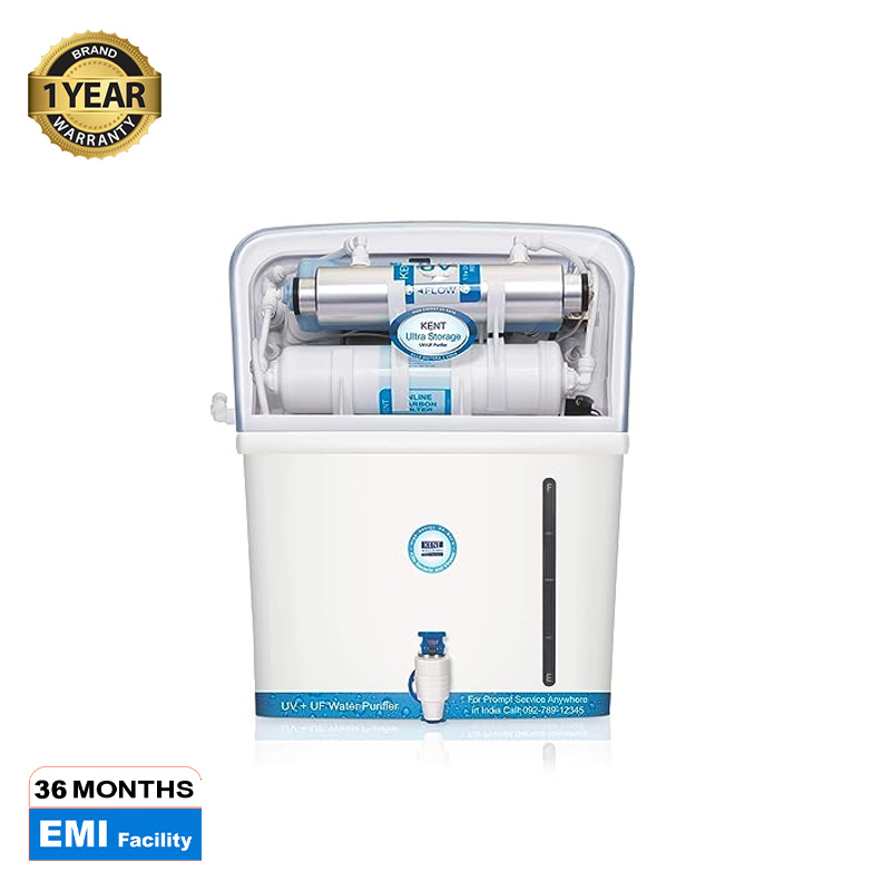 KENT Ultra Storage UV Water Purifier | UV+UF Water Purification | Wall Mountable | 8L Storag (Not Suitable for Borewell or tanker water) - White