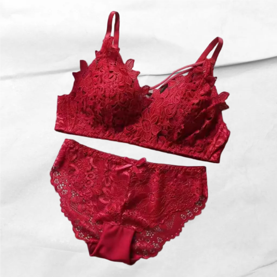 Women Push Up Bra Set Girl Floral Lace Underwear Set Underwire Brassiere