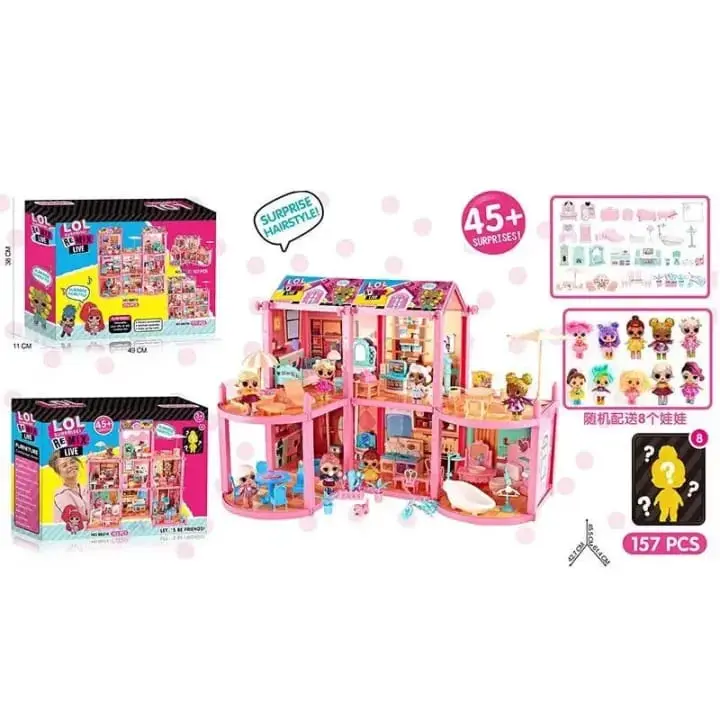 There is a bicycle in front of the entrance to the house so that the dolls can spend active leisure time in the park or in the yard