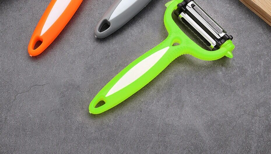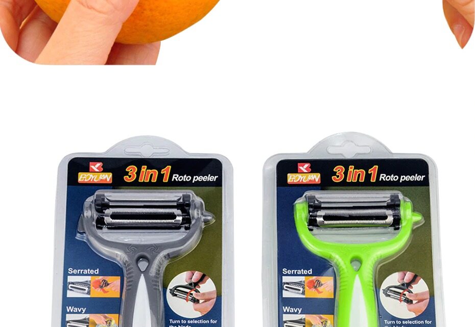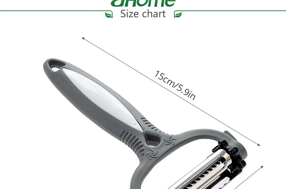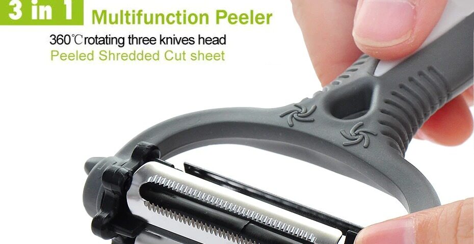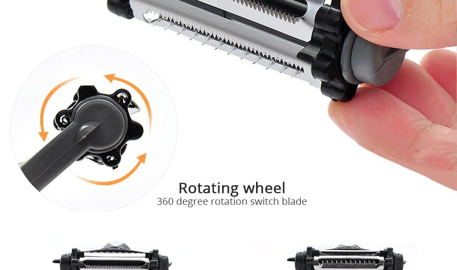 Brand new and high quality3 kinds of blades meets your different requirements. 360 degree rotatable blades, convenient to change.Easy to use and clean, safe. It's a good tool for kitchen cooking.Environment-friendly plastic holder, comfortable hand-feel.Hang, for storage, saving space.Color: Random (Orange, gray, black or green),don't accept the specified color.Material: Stainless Steel + ABSSize: Approx. 15.5x 8.5x 2.5cmItem Weight: 35.0gPackage Listing:1 x 360 Degree Slicer PeeleOnly the above package content, other products are not included.Note: Light and different displays may cause the color of the item in the picture a little different from the real thing. The measurement allowed error is +/- 1-3cm.