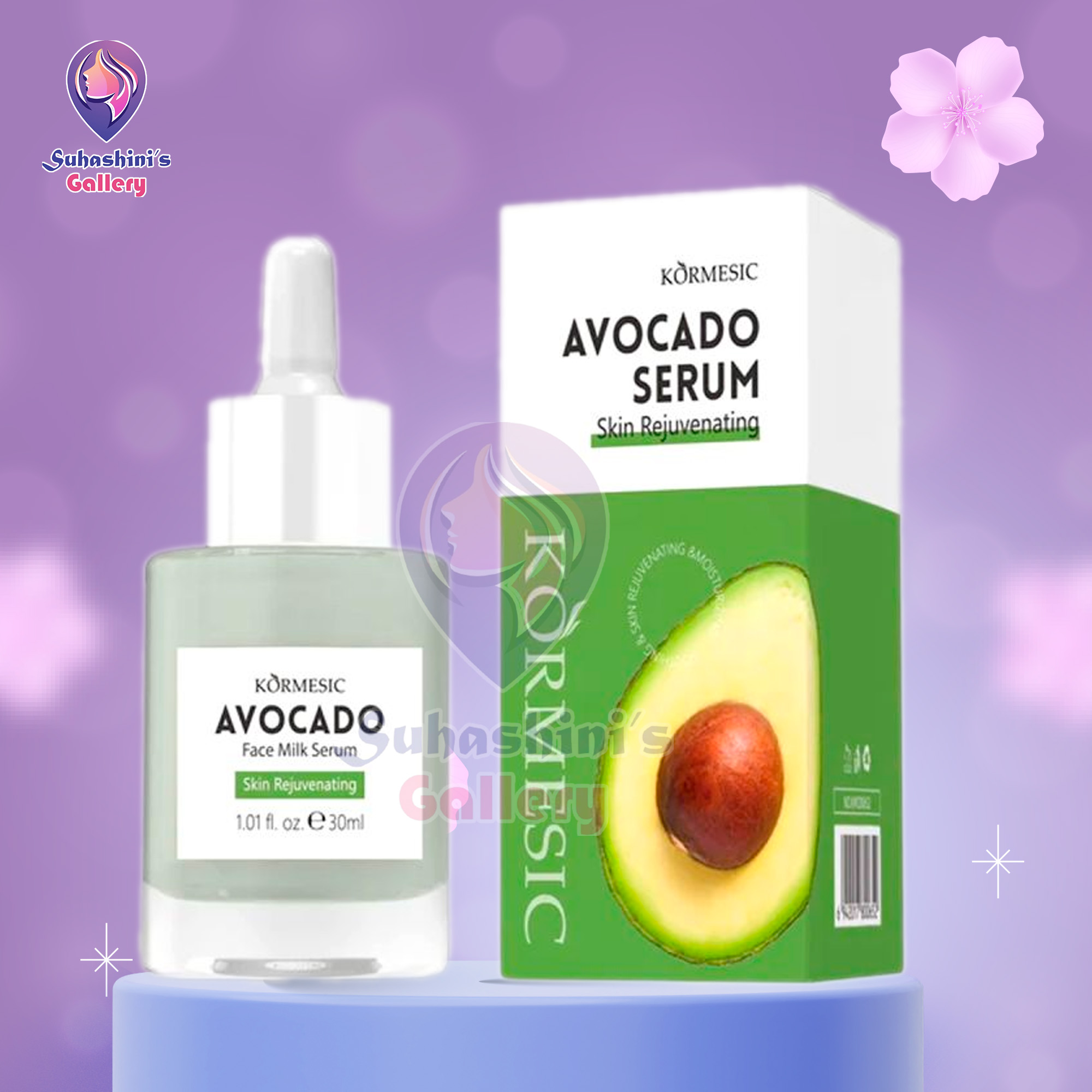 Kormesic Avocado Serum is a skin rejuvenating serum enriched with the nourishing properties of avocado oil. This serum deeply hydrates, revitalizes, and restores the skin's natural glow, making it softer, smoother, and more youthful. Rich in antioxidants and vitamins, it helps to reduce the appearance of fine lines, improve skin texture, and protect against environmental damage. Ideal for all skin types, this lightweight serum absorbs quickly without leaving a greasy residue.