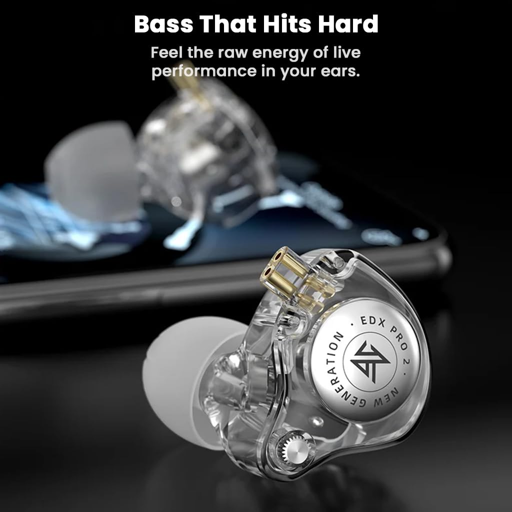The KZ EDX Pro 2 is a budget IEM that hits above its price—great for music, gaming, and daily calls. Its 10mm Super Linear Dynamic driver delivers lively bass with clear mids and crisp highs. The detachable 0.75mm 2-pin design lets you replace or upgrade cables, while the 3.5mm plug ensures wide device compatibility. The mic/remote handles calls and playback on the go, and the lightweight, ergonomic build stays comfortable for long sessions. Available in black or transparent.