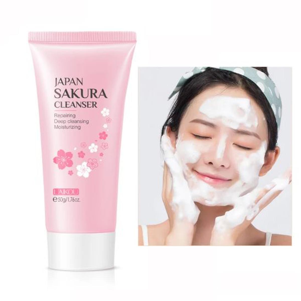 - LAIKOU Japan Sakura Cleanser Whitening Face Wash Cleansing Pores Blackheads 50g