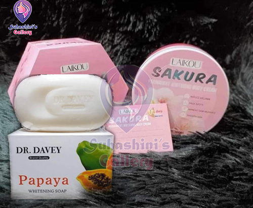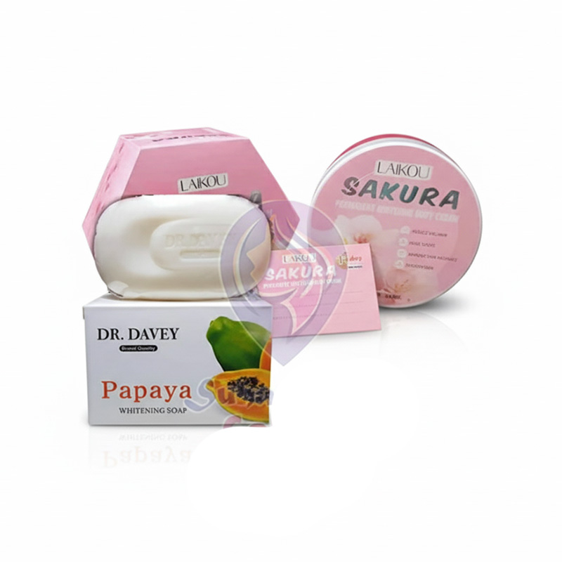 Experience the perfect blend of cleansing and hydration with the Laikou Sakura Body Cream & Dr. Davey Soap Whitening Combo. Dr. Davey Soap gently cleanses and brightens the skin, while Laikou Sakura Body Cream provides deep nourishment and a radiant glow. This combo is ideal for enhancing your skin’s texture, tone, and overall appearance.