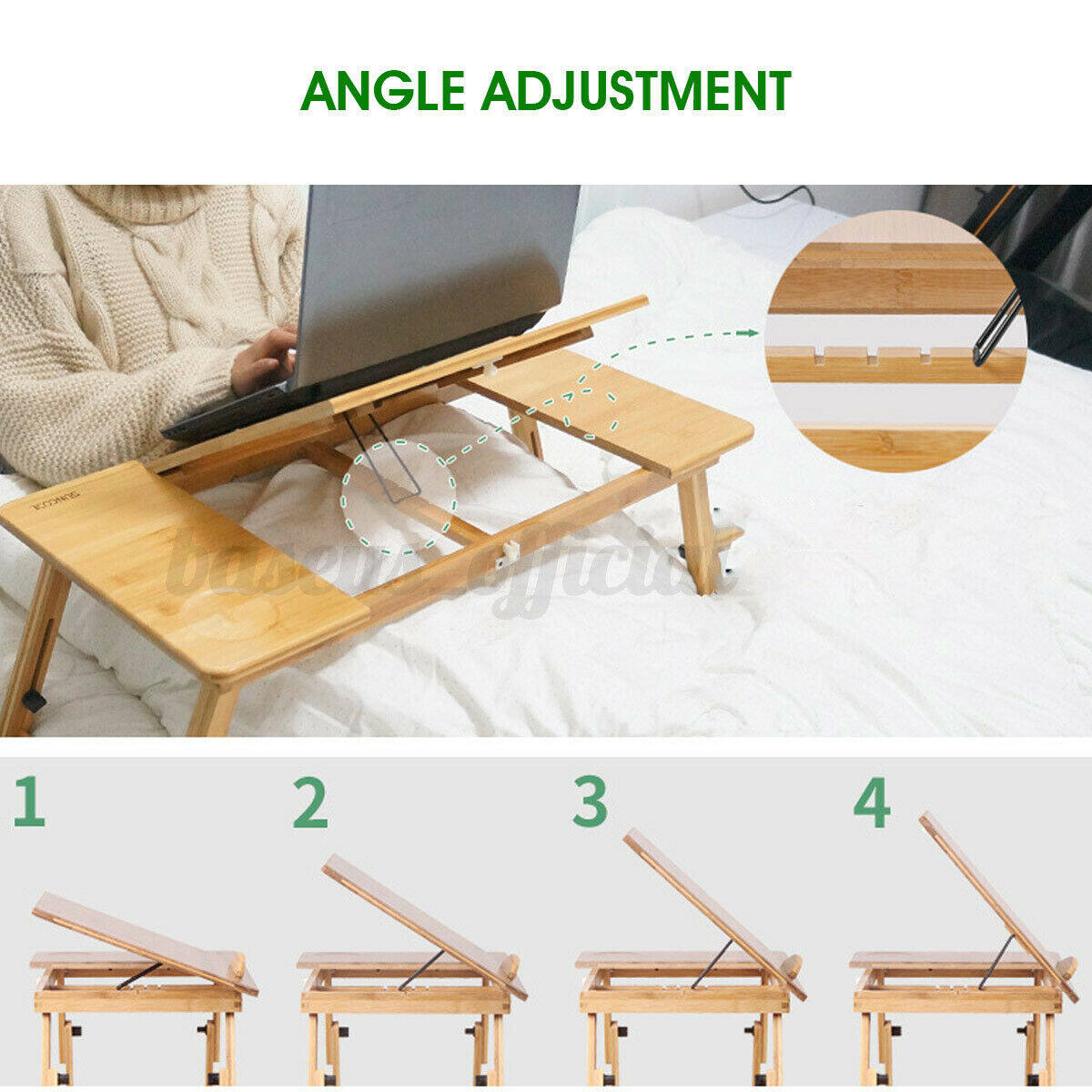 1. Adjustable height and adjustable tabletop, more convenient to use as you need.2. The material is thick, the color is natural and the bamboo pattern is clearly.3. Suitable for using as laptop desk, student dormitory table and home bed table.4. Folding computer desk, it can be folded and stored when not in use, saving space.5. Good support and strong load bearing capacity, sturdy and durable for long time use
