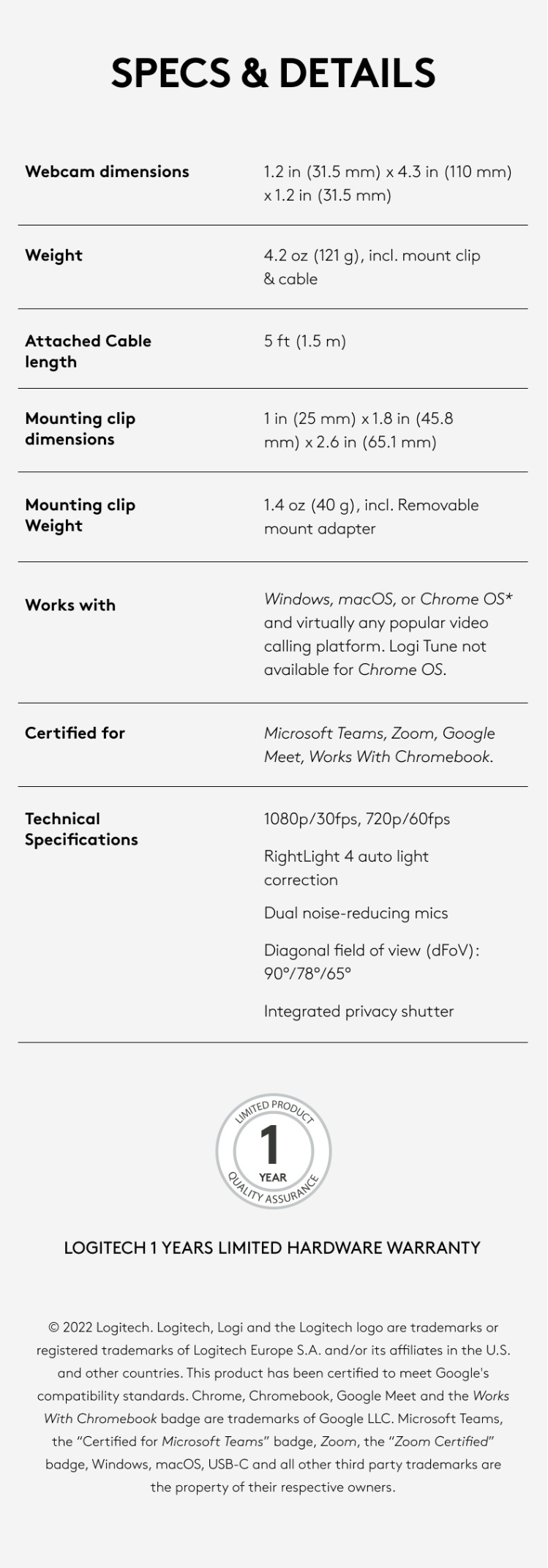 • Logi Tune: Pair with Logi Tune to customize your Logitech Webcam experience; zoom in or out, mute the microphone, adjust color and image resolution, manage auto-frame, and set automatic updates