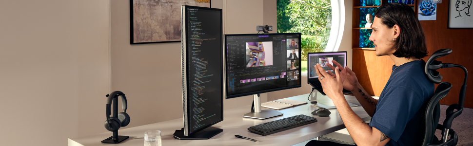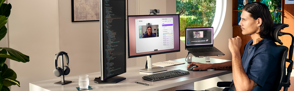 • Share Your Work: Tilt down your Logitech webcam to share notes and sketches on your desk with Show Mode, allowing for better collaboration on calls