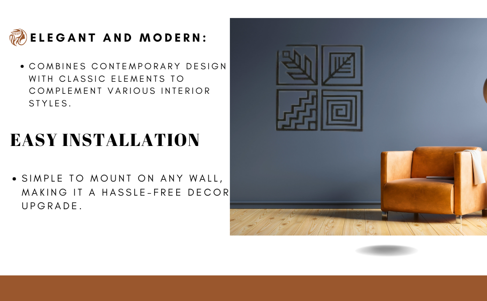 Elevate your interior with this set of four abstract wall decor pieces. Each piece is meticulously laser-cut to create stunning wall art that adds a touch of modern elegance to any room. Perfect for home decoration, these art pieces will enhance the aesthetic appeal of your space with their contemporary design.