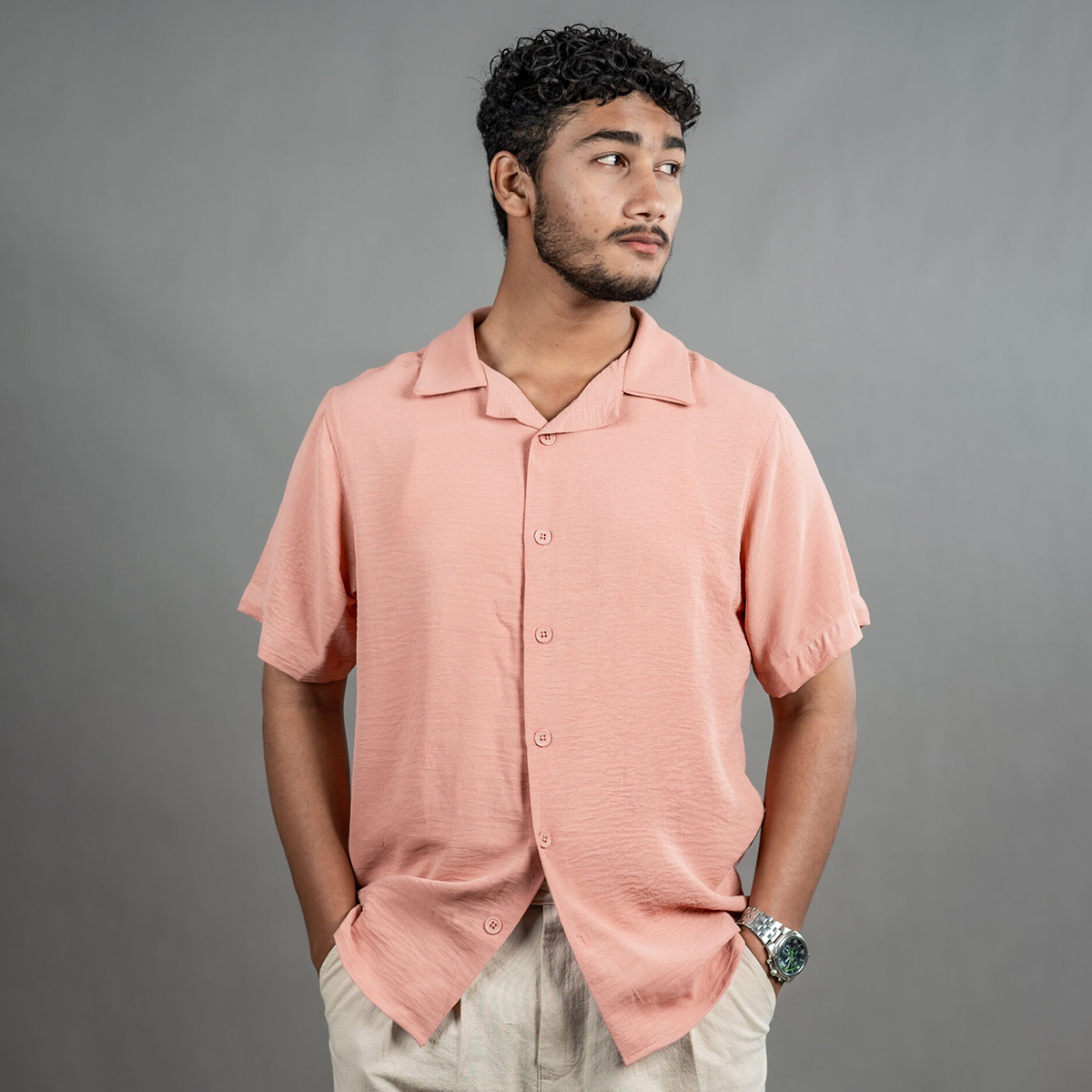 - Relaxed Cuban Collar – effortless style.