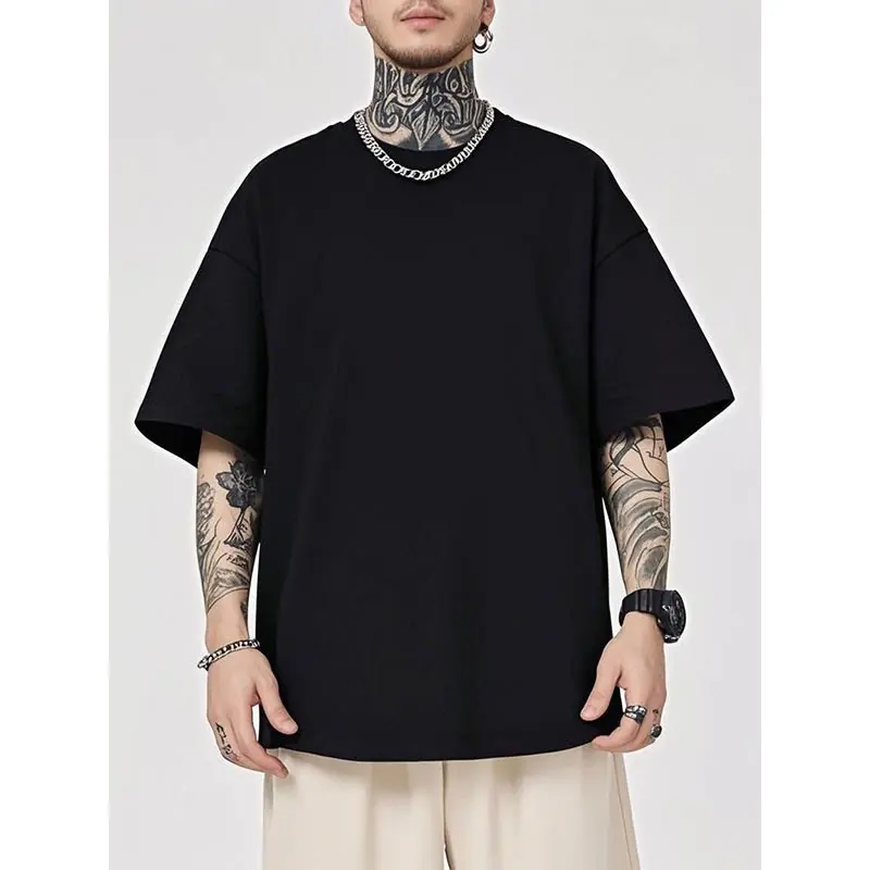 The drop shoulder oversized design adds a trendy streetwear vibe, while the classic black color makes it easy to pair with jeans, joggers, or shorts. Whether you’re going out with friends, heading to work, or just relaxing at home, this t-shirt is the perfect choice for style and comfort.