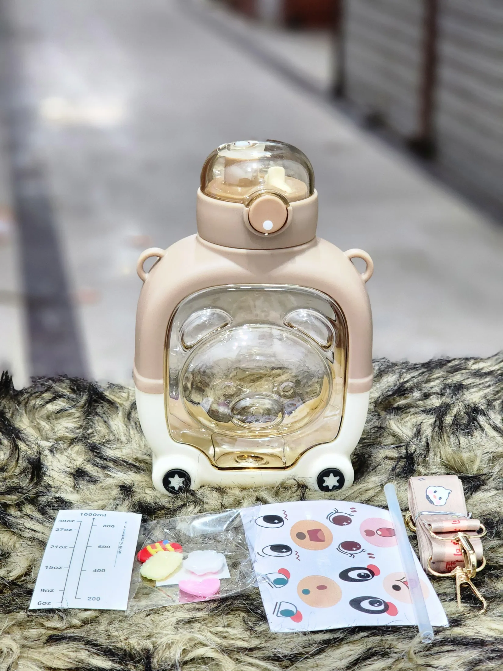 Introducing the Mini Cute Bear Water Bottle Portable Tumbler Straw Cup! This adorable 1000ml flask is perfect for kids and includes stickers and lace for personalization. It is ideal for outdoor activities, making it a must-have accessory for staying hydrated on the go. The cute bear design adds a fun touch, making it a favorite among young ones. Whether for sports, school, or travel, this water bottle is both practical and charming, ensuring kids stay hydrated while having fun on the go. With its 1000ml capacity, it provides ample hydration for various activities, making it a versatile and delightful choice for kids.