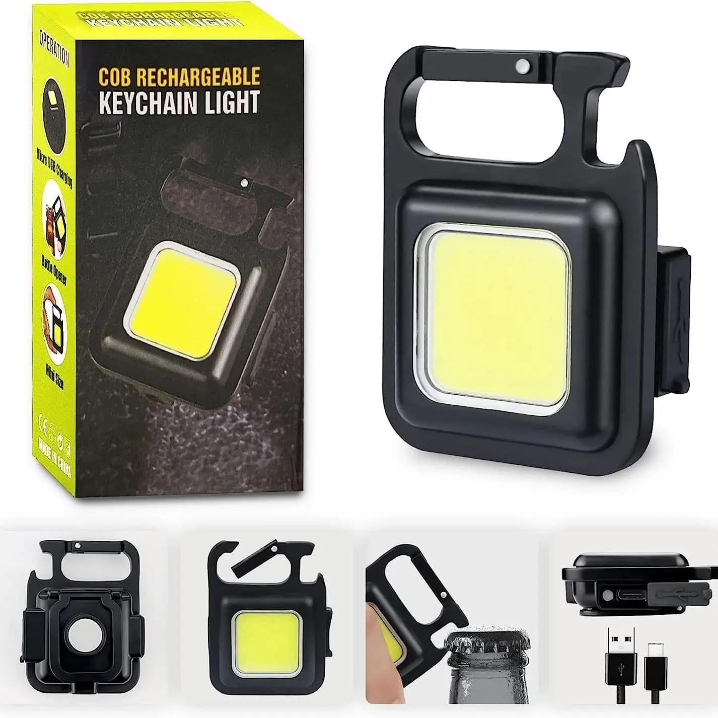 Mini LED Keychain Flashlights Multifunctional Portable Light USB Charging Camping Lamp Outdoor Torch Fishing Lantern