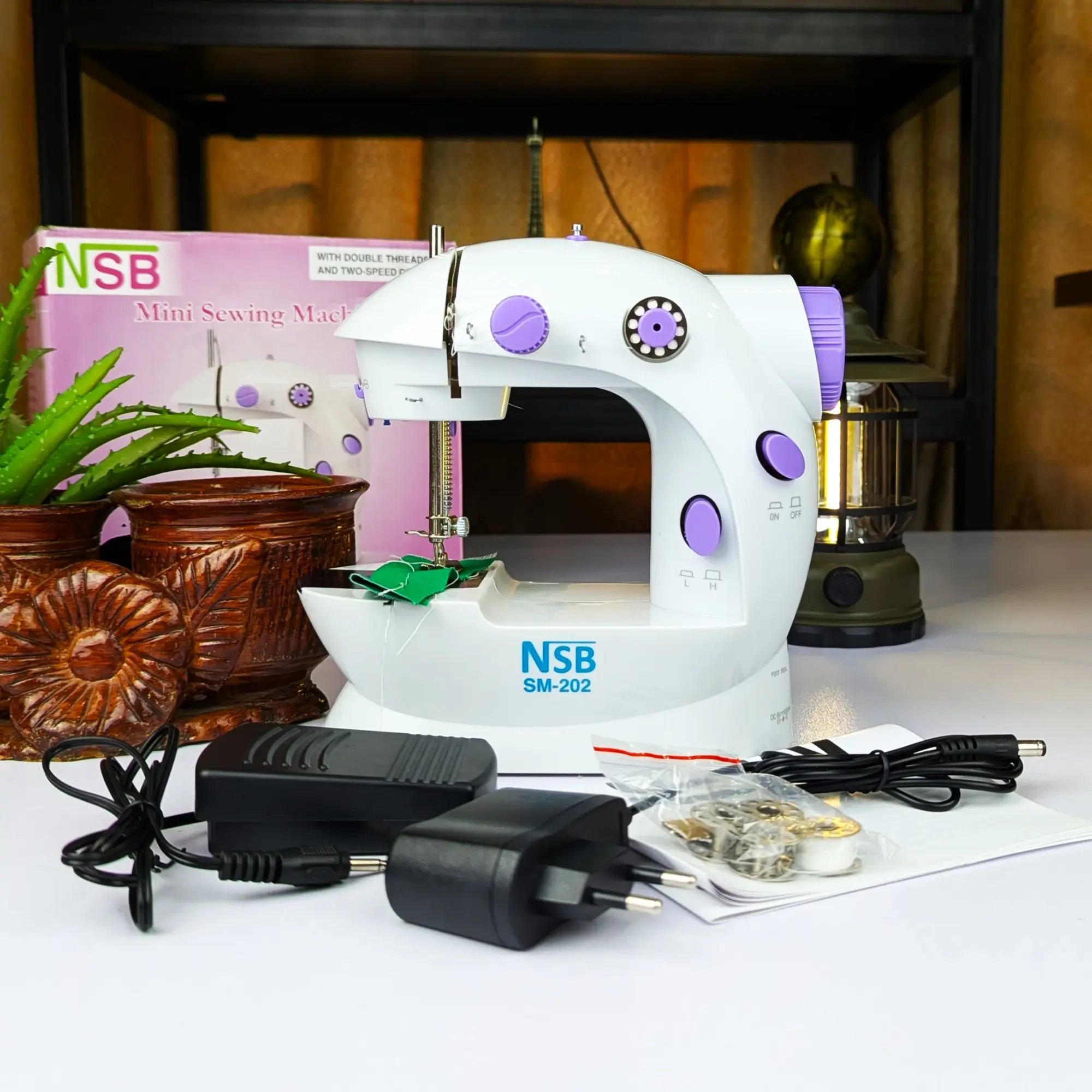 Mini Sewing Machine – Model CGSM-202 SM-202A একটি কমপ্যাক্ট ও পোর্টেবল ইলেকট্রিক সেলাই মেশিন, যা ঘরোয়া ব্যবহার ও নতুনদের জন্য উপযুক্ত।বৈশিষ্ট্য: ডাবল থ্রেড সেলাই, লো ও হাই স্পিড অপশন, ইনবিল্ট লাইট, ও থ্রেড কাটার।নিয়ন্ত্রণ: হ্যান্ড সুইচ বা ফুট প্যাডেল (সংযুক্ত) দিয়ে চালানো যায়।পোর্টেবিলিটি ও পাওয়ার: হালকা ও সহজে বহনযোগ্য। চালানো যায় এসি অ্যাডাপ্টার বা ৪টি এএ ব্যাটারিতে (ব্যাটারি অন্তর্ভুক্ত নয়)।উপযোগিতা: ছোটখাটো সেলাই, মেরামত, ক্রাফটিং এবং নতুনদের জন্য উপযুক্ত।সহজলভ্যতা: SM-202A সহ বিভিন্ন মডেল অনলাইনে সহজে পাওয়া যায়।
