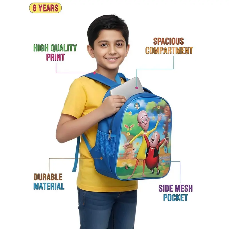 This Kazi Brand Motu Patlu Kids Backpack is the perfect companion for 8-year-old boys and girls! Featuring a vibrant, high-quality print of their favorite characters, it's designed with premium, durable material for long-lasting use. The bag offers a spacious, multi-compartment interior, including a dedicated laptop slot, ensuring all essentials are organized. With comfortable, adjustable straps and convenient side mesh pockets, it’s ideal for school, travel, and everyday adventures. Give your child the joy of carrying their favorite Motu Patlu bag!