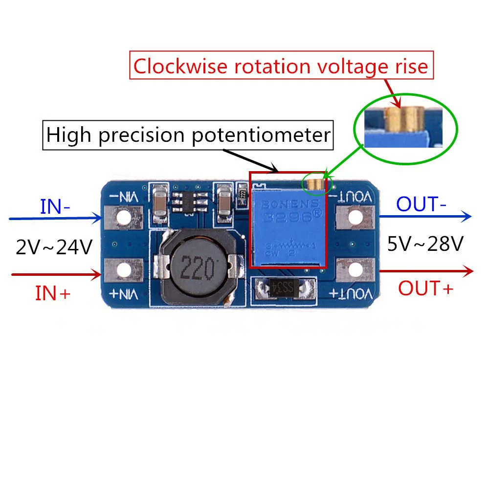 - Output Voltage: Adjustable from 2V to 28V DC (must be higher than input voltage). The ability to fine-tune the output voltage opens up numerous possibilities for applications, enabling the driver of devices needing specific voltage requirements.