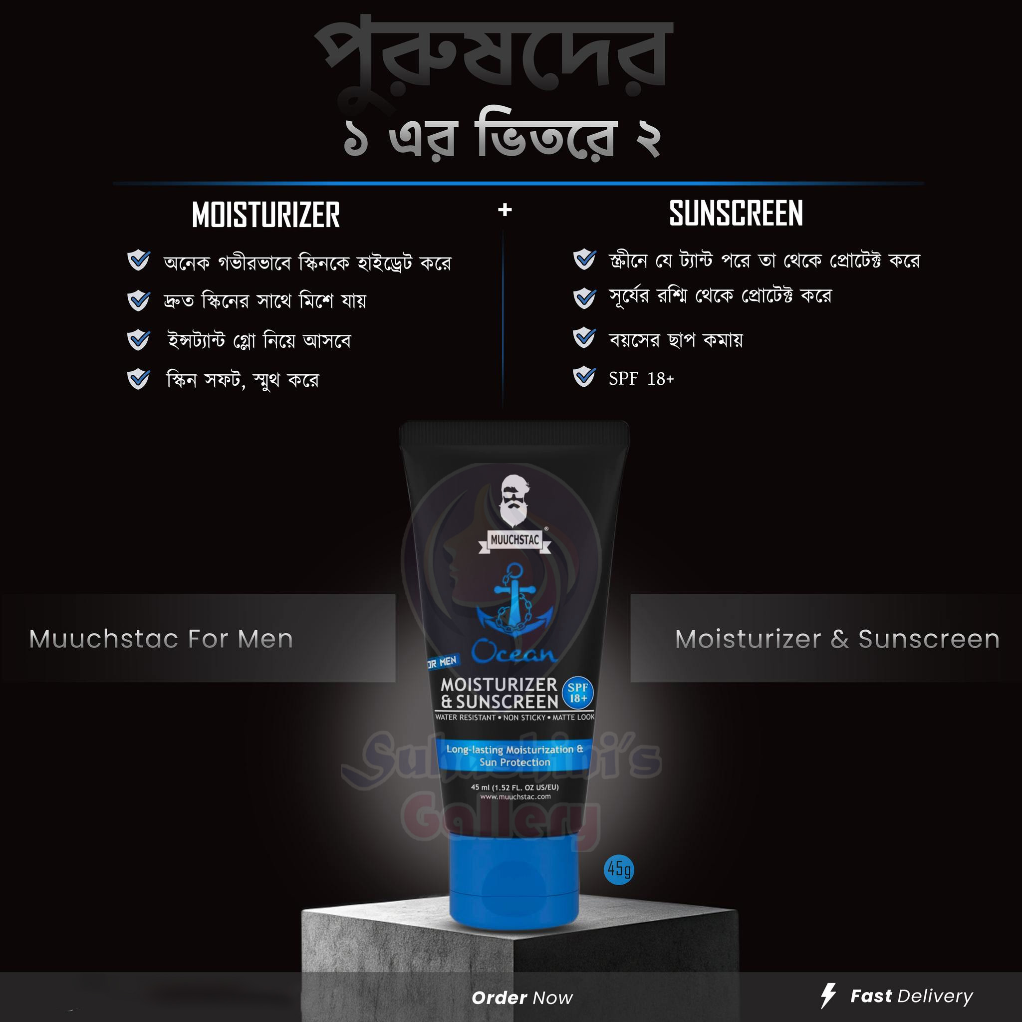 Muuchstac Best Combo for Men is a powerful skincare duo designed to cleanse, protect, and hydrate men’s skin. The facewash helps remove dirt, oil, and pollutants while controlling acne and excess sebum. The 2-in-1 Moisturizer & Sunscreen keeps your skin hydrated while shielding it from harmful UV rays. Made specifically for men’s tough skin, this combo ensures freshness, protection, and a healthy glow every day. Suitable for all skin types and perfect for daily grooming.