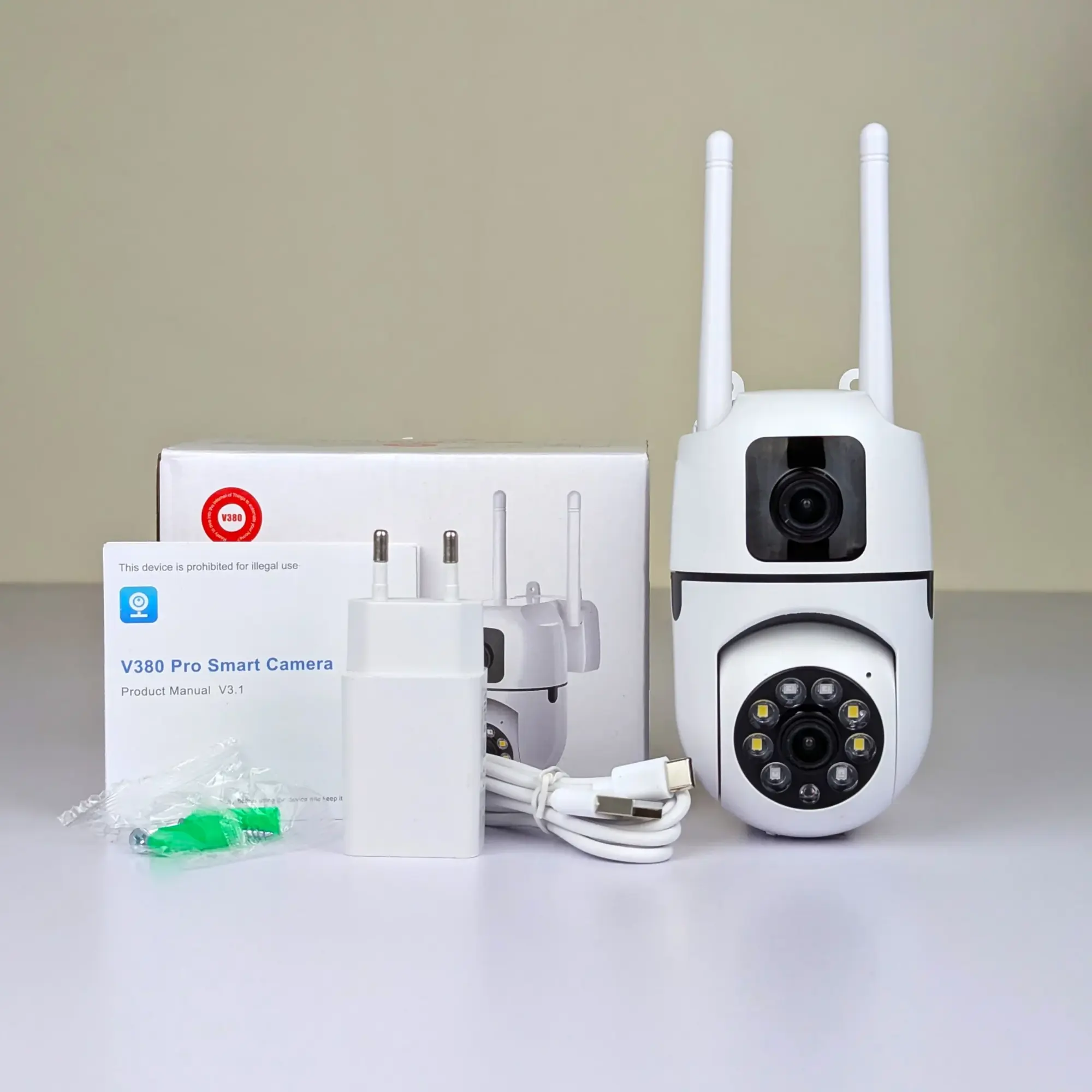Product details of New V380 Mini Indoor PTZ Dual Lens Camera 4MP HD Smart Home WiFi Security for Baby Monitor Indoor Network Dual Lens CameraModel: SQ21-LAPP: V380 ProNetwork connection: Support WIFI, AP hotspot (without RJ45 Network port)Network: 2.4G Wi-Fi (Support IEEE802.11b/g/ N wireless protocol)Night Version:Dual Light switch automatic, 5-10 Meters(varies from environment)Audio: Built-in microphone and speaker, support two-way real-time audio transmission. ADPCM audio compression standard, self-adaptivestream codeStorage: TF Card(Max 128G);Cloud storage (optional)Power input: 5V/1.6A (EU and US Plug optional)
