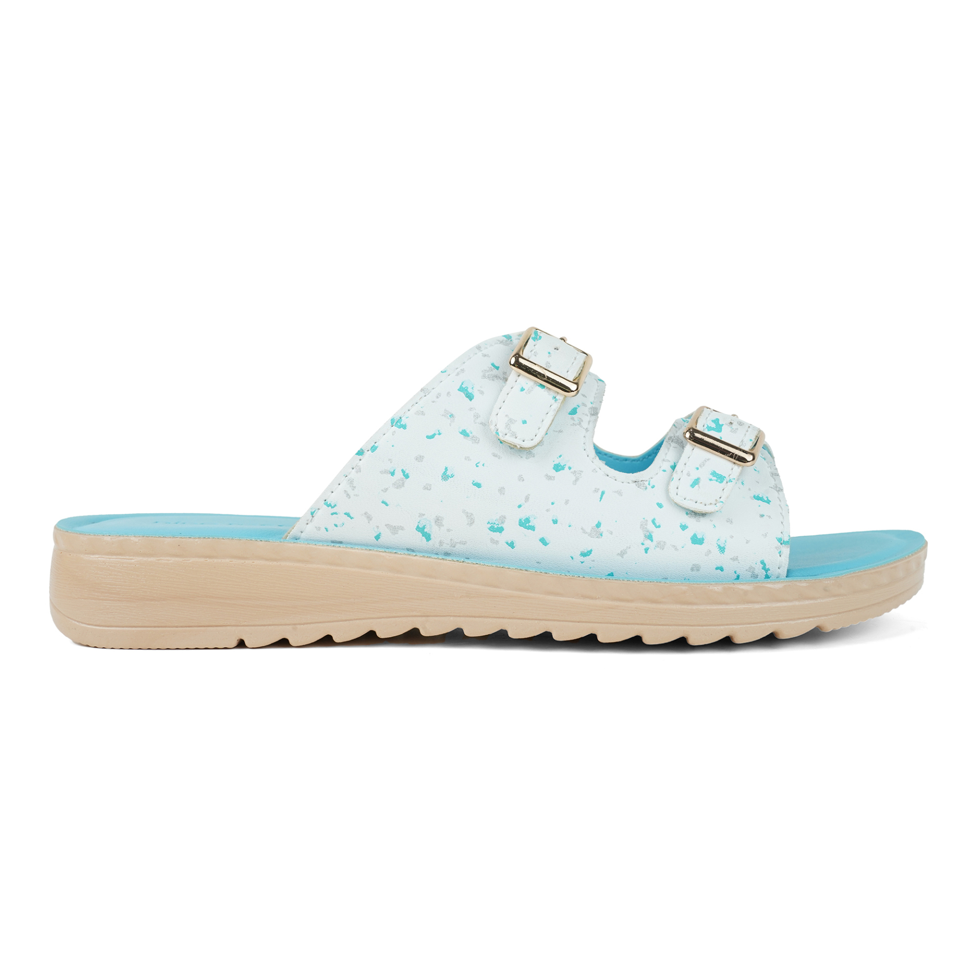 Add a touch of flair to your day with the Nino Rossi Women's Two Strap Sandal. Designed with a upper featuring stylish metal trim details, it blends style with comfort. The PU sole provides lightweight support, making it ideal for all-day wear, whether you’re heading out for errands or a casual meet-up.