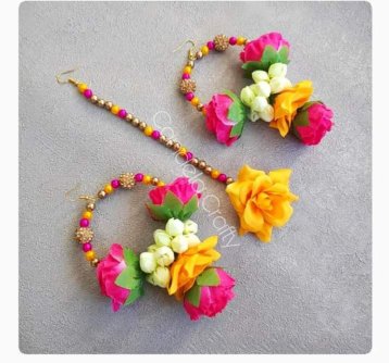 Very beautiful colour combination . Beli flower with reno good combination.New look and new desgine. artificial flower jewellery akon onk trendy . Ata sobaike akto alada stylish look dey. Biye barite ata beshi popular.Biye manei shajgoj biye manei holo flower .Ta charao bangladeshe bivinno occation a flower onk dorkari akti jinish