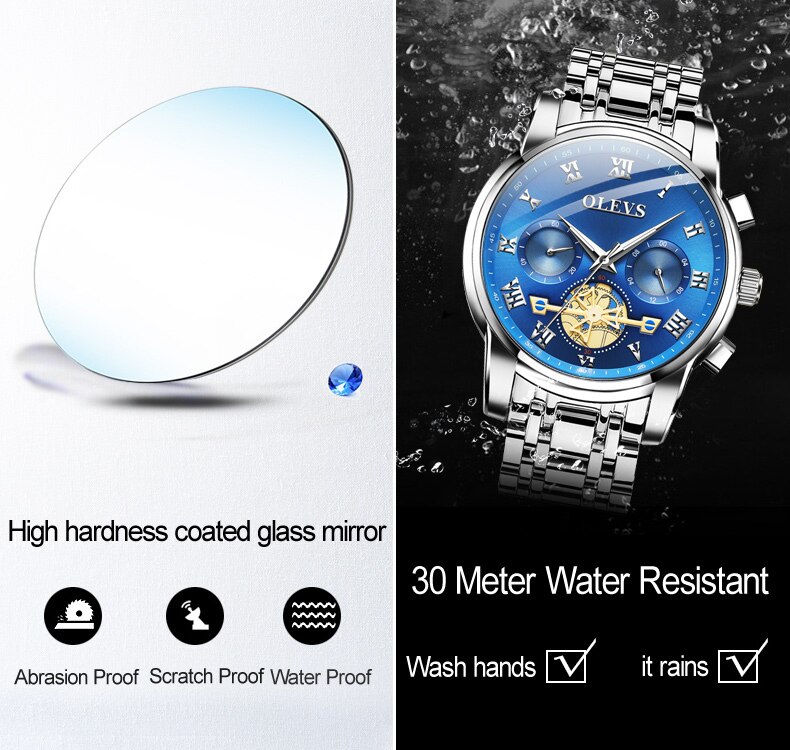 - WaterproofSpecial features: decoration, chronograph, calendar, 24-hour instructions