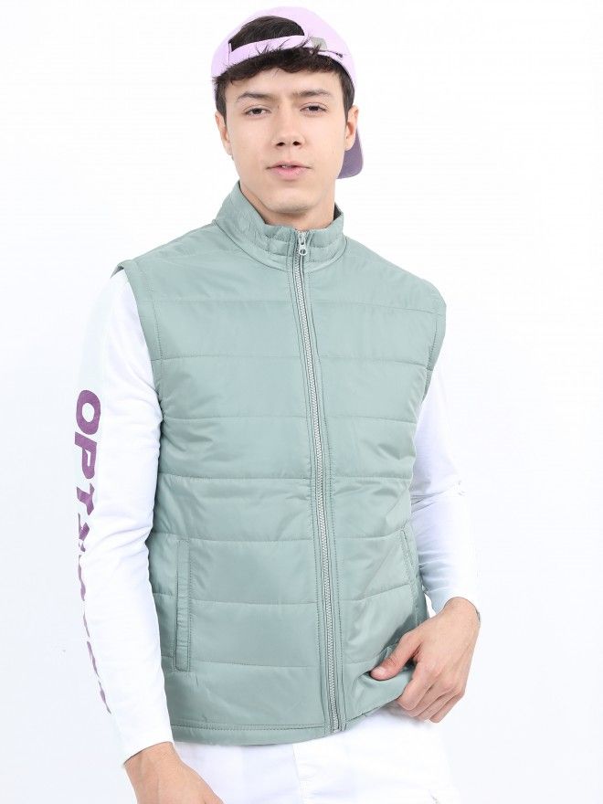 Pantoneclo Premium Quality Multicolor Men's Padding Sleeveless Jacket - Ochre / Silver Blue / Four Leaf Clover