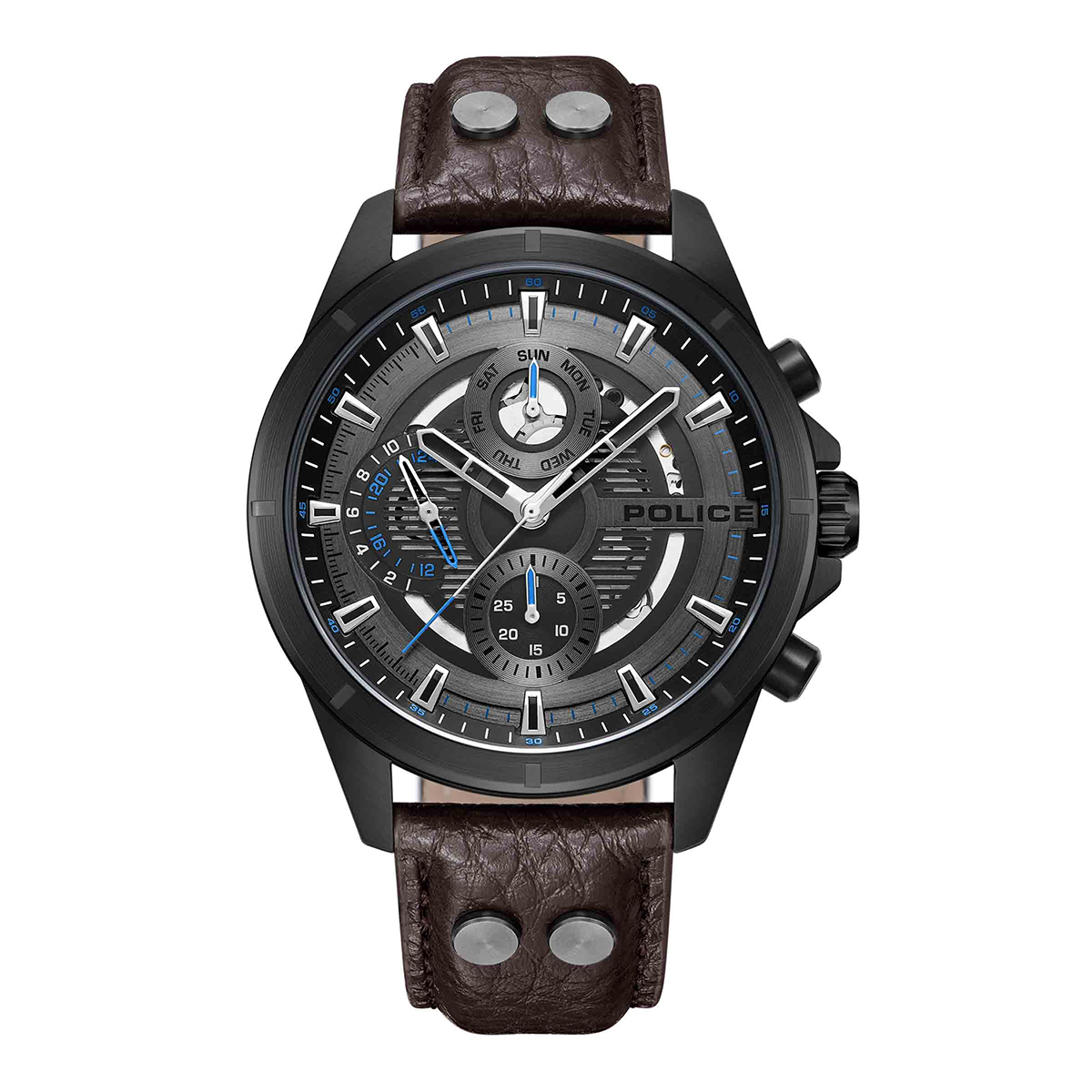 - Strap: Padded Brown Grained Leather Strap With 4 Ip Gun Metal Screws (Ip Gun Normal Wch Band Material)