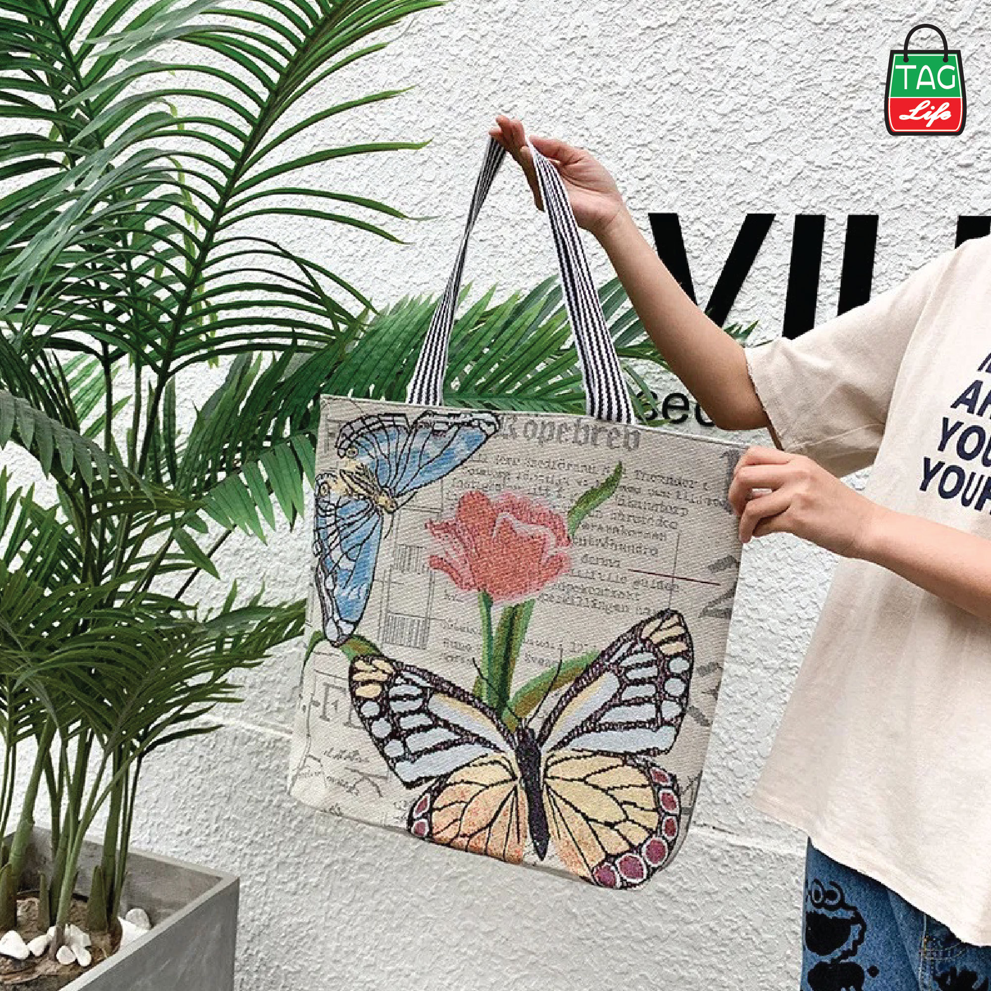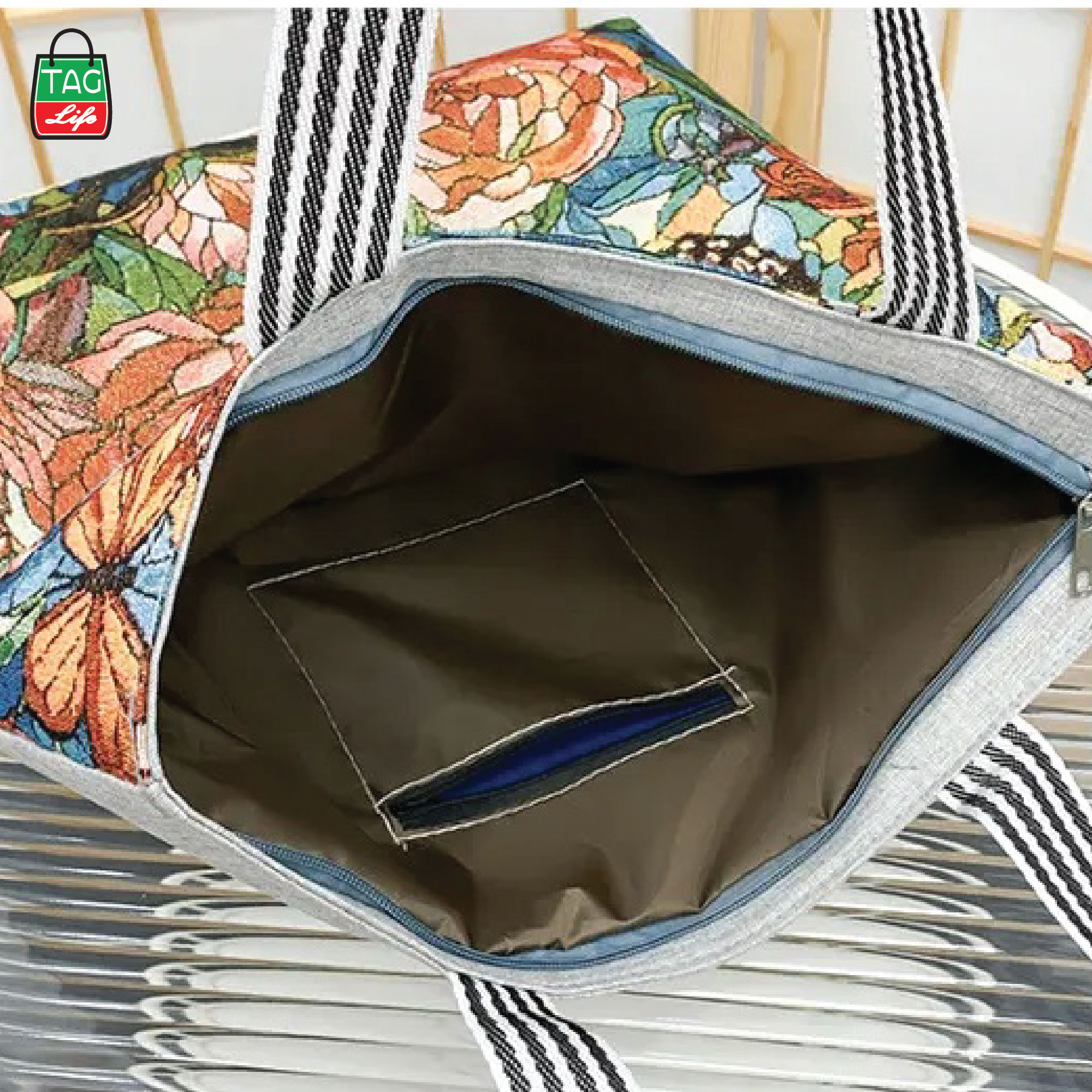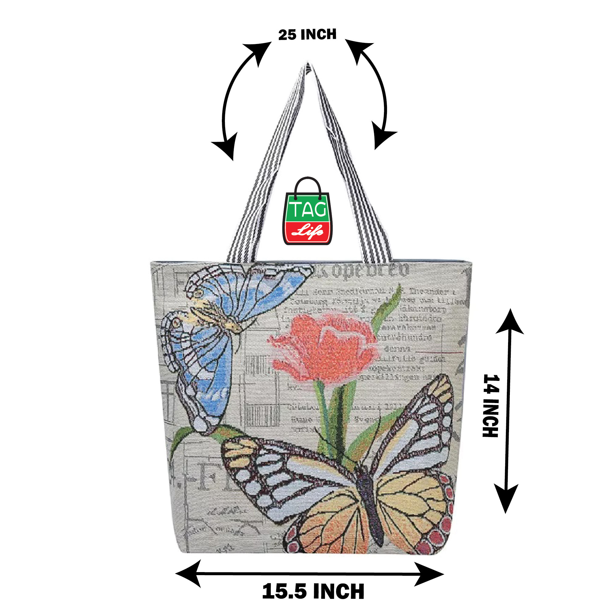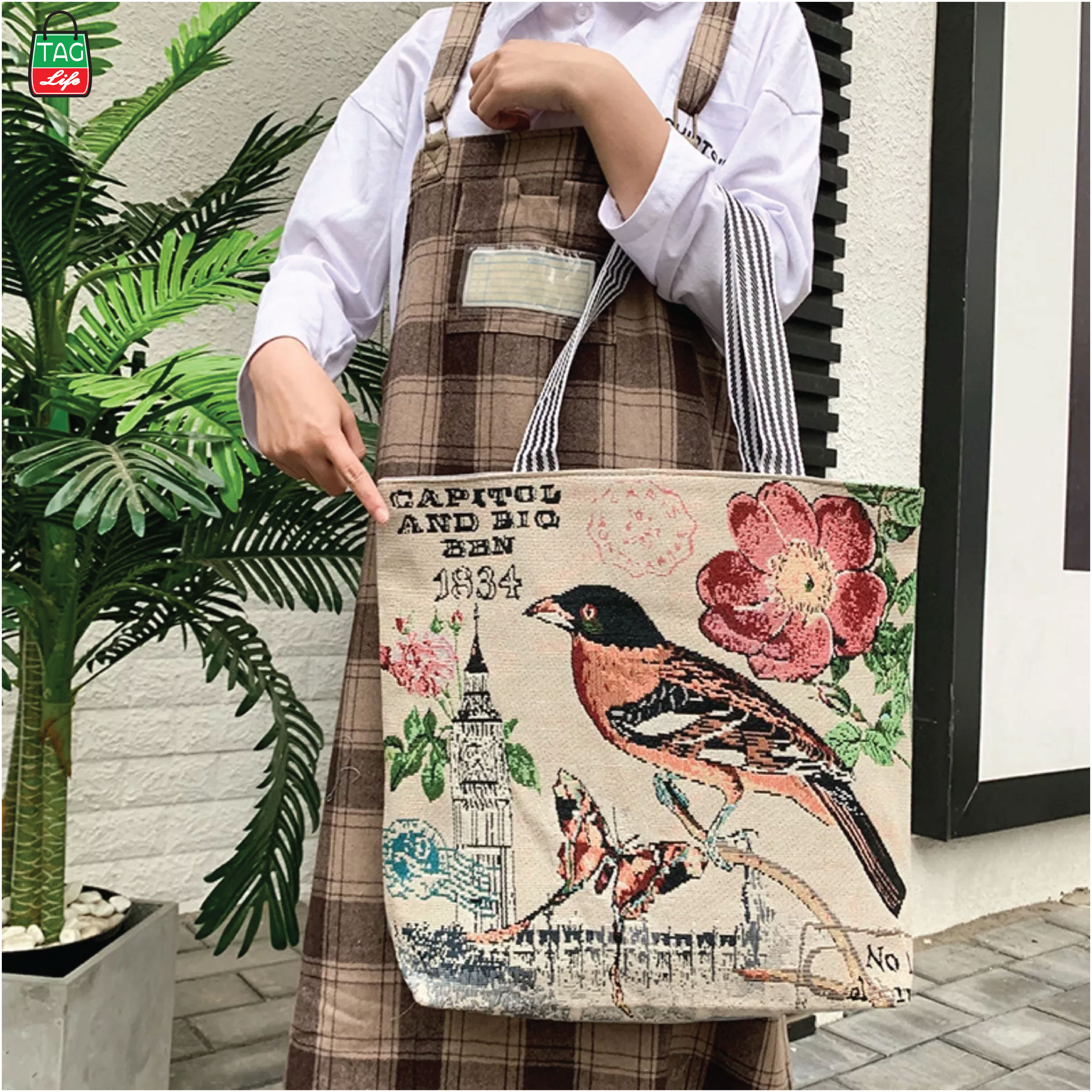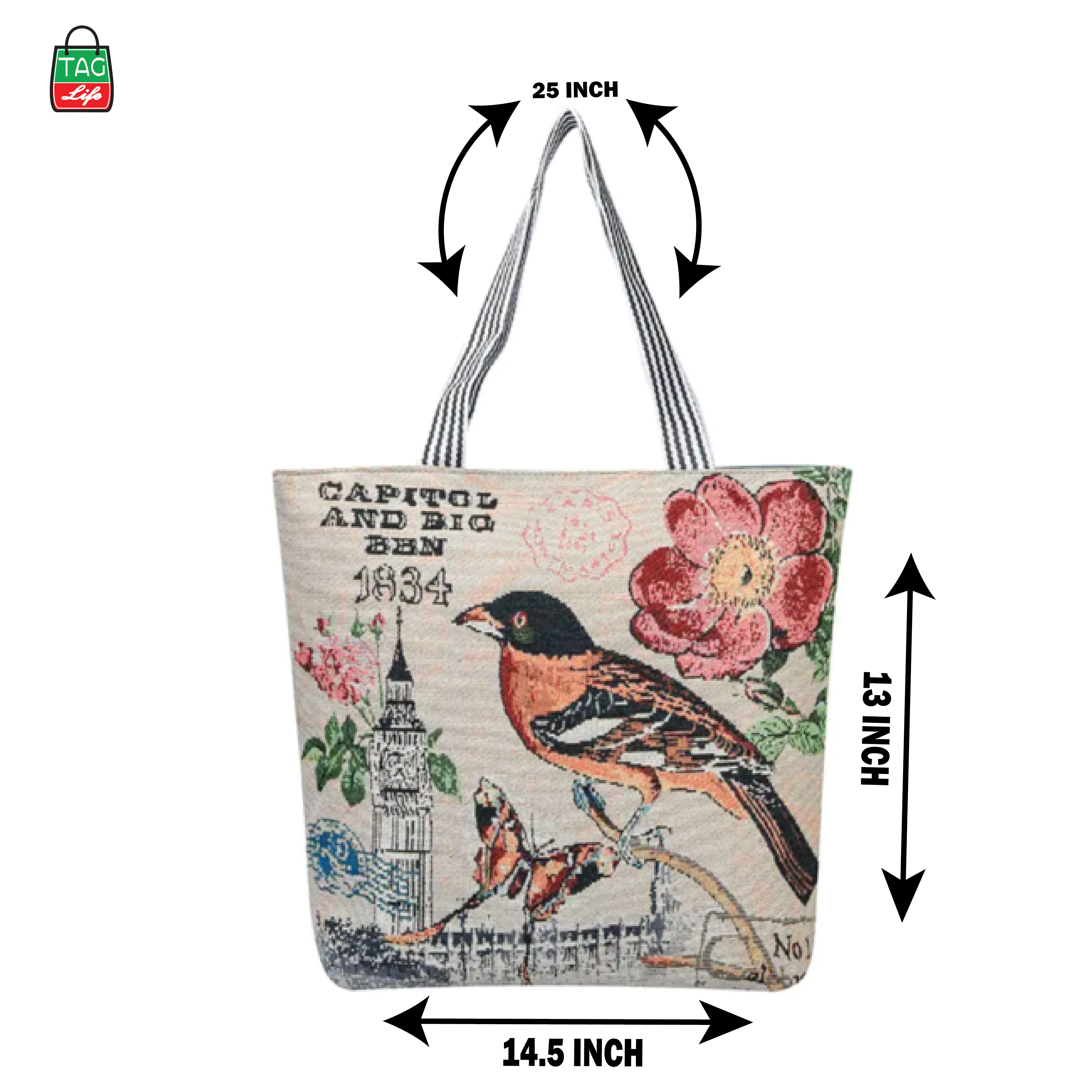 Product details of TAG Lifestyle Retro Embroidered Print Canvas Tote Bag Shopping Bag, Girls & Ladies Jacquard Embroidered Bag, Inside pocket Top Handle Tote Bag for University/College/Girls Students And Fashionable Women