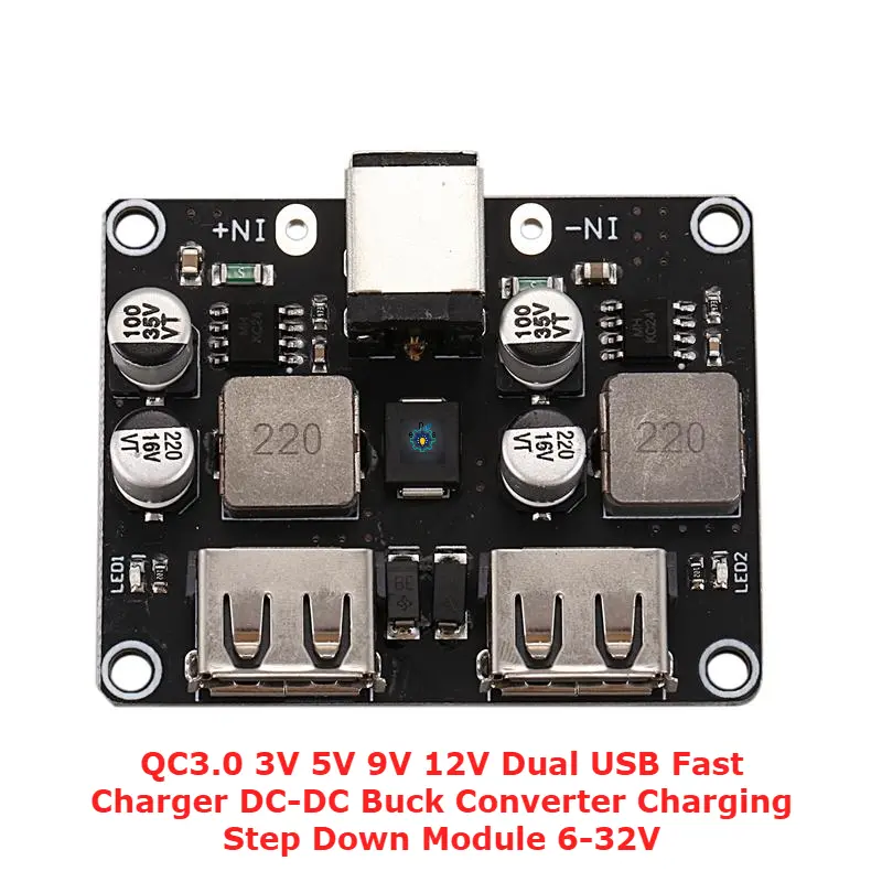 - Output power: up to 24 W (5 V / 3.4A, 9 V / 2.5 A, 12 V / 2A, etc.)