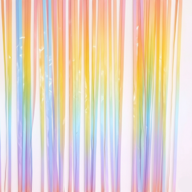 - Rainbow Gradient Colorful Metallic Foil Fringe Curtain Pastel Candy Colored Metallic Tinsel Curtain Backdrop for Birthday Party Baby Shower Party Decoration