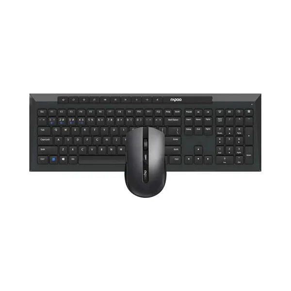 Rapoo 8210M Multi-Mode Wireless Keyboard & Mouse Combo – BlackThe Rapoo 8210M is a durable and versatile wireless keyboard and mouse combo designed for everyday use in both home and office environments. With multi-mode connectivity, spill-resistant design, multimedia hotkeys, and long battery life, this combo is built to deliver reliable performance and convenience across multiple devices.Key Features: Multi-Mode Wireless ConnectivitySupports Bluetooth 3.0, Bluetooth 4.0, and 2.4GHz wireless, allowing you to connect seamlessly to multiple devices. With intelligent switching, you can toggle between your PC, laptop, and tablet with ease.Spill-Resistant KeyboardThe keyboard is designed with a spill-resistant structure to protect against accidental liquid spills, ensuring long-term durability and uninterrupted productivity.Multimedia HotkeysEquipped with convenient multimedia shortcut keys, the keyboard allows quick access to music, volume, and other essential functions, boosting work efficiency and entertainment convenience.High-Precision MouseThe included wireless mouse features an adjustable 1600 DPI optical sensor, delivering smooth, accurate, and responsive tracking for everyday tasks and professional work.Extended Battery LifeOptimized for energy efficiency, the 8210M provides up to 12 months of battery life for the keyboard and 9 months for the mouse, ensuring long-lasting, worry-free use without frequent replacements.Durable Professional DesignFinished in sleek black, the 8210M combo offers a modern aesthetic with a robust build quality, making it suitable for both professional and casual use.2-Year Official WarrantyComes with a 2-year manufacturer warranty, providing reliable after-sales support and long-term peace of mind.The Rapoo 8210M Multi-Mode Wireless Keyboard & Mouse Combo – Black delivers the perfect balance of durability, convenience, and multi-device adaptability. With its spill-resistant keyboard, precision mouse, and extended battery life, it is an excellent choice for users seeking a reliable and versatile combo for everyday productivity.