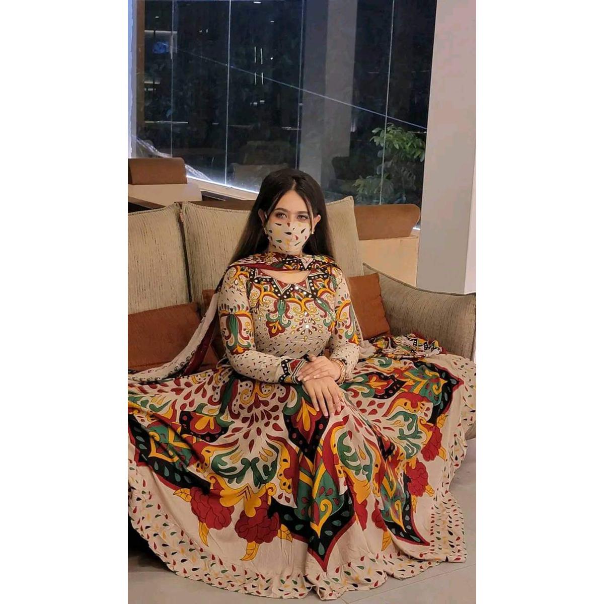 এ,সি কটনের উপর গর্জিয়াস স্কীন প্রিন্ট এবং গ্লাসওয়ার্ক করা রেডিমেড টু পিস👌