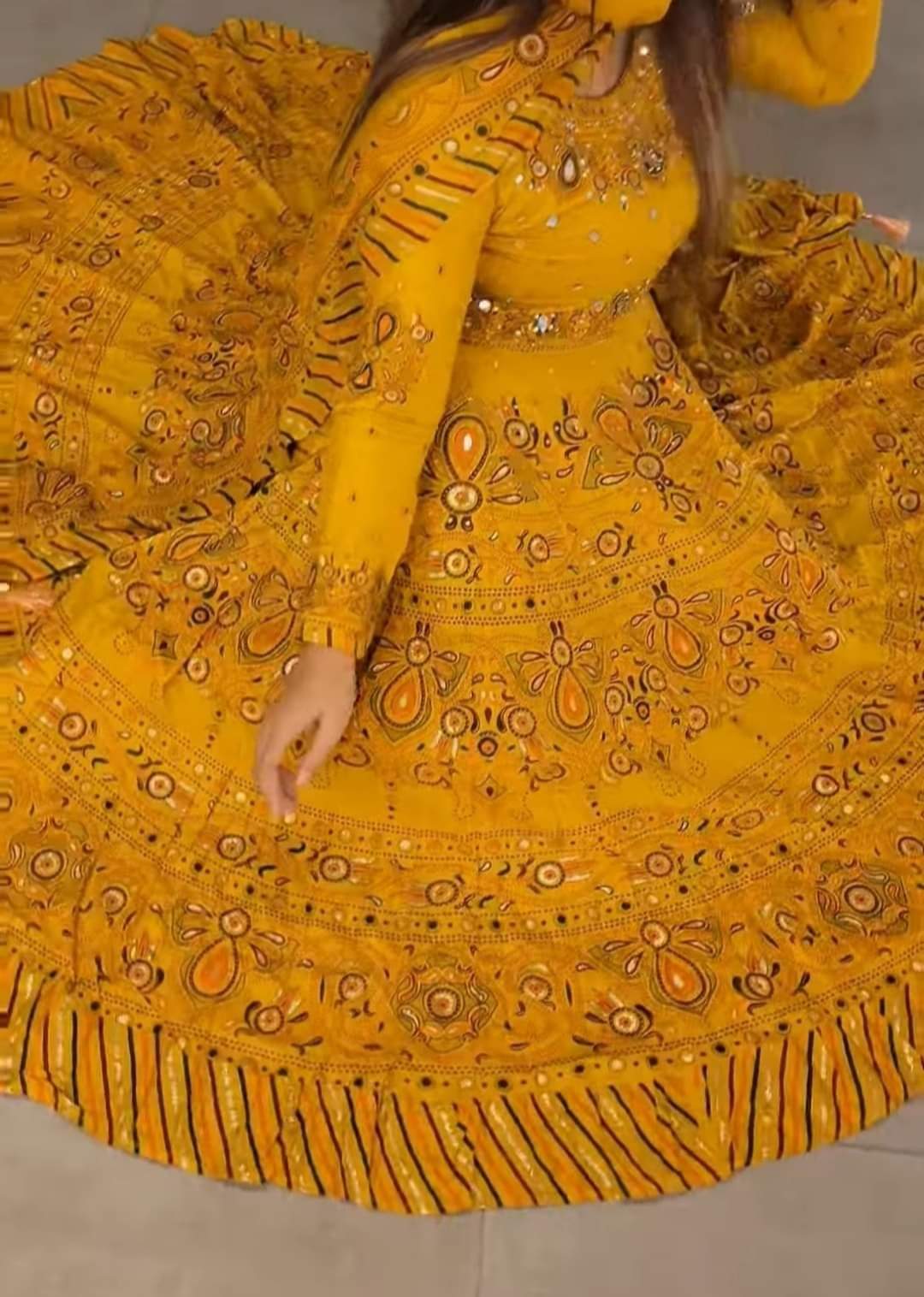 Readymade Unique VIP Gown and Orna AC cotton Glass work Free Size Salwar Kameez Suits For Women - Yellow