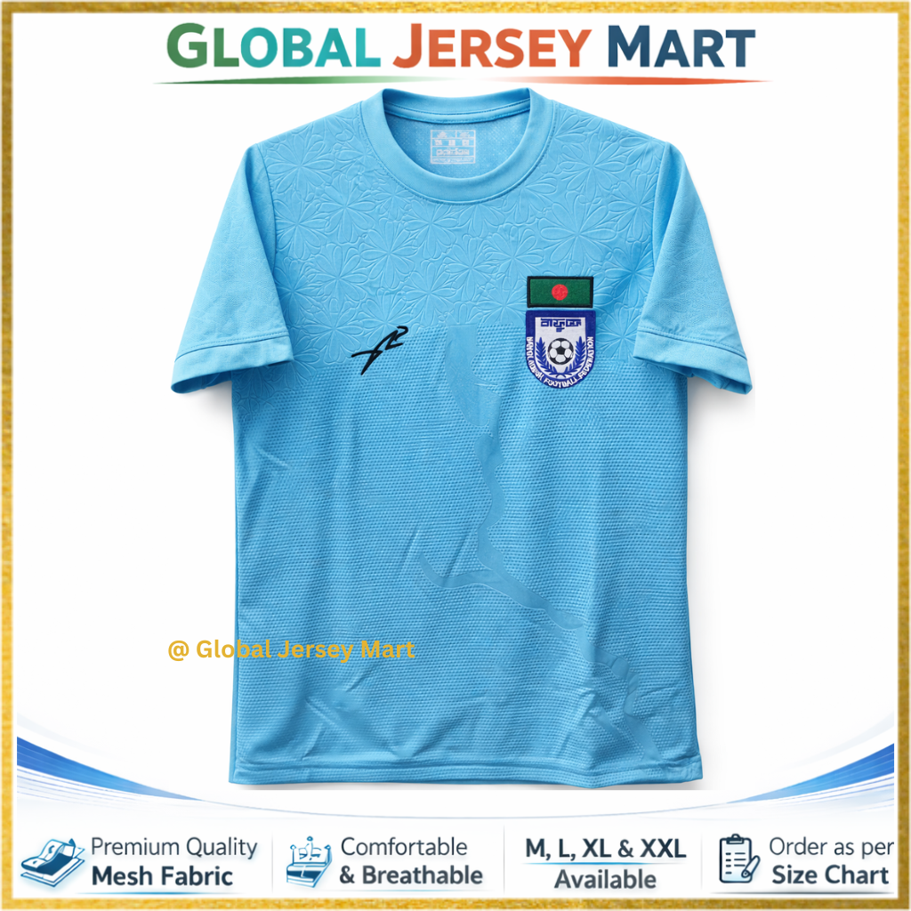 Built with breathable, sweat-friendly mesh fabric, it feels light, soft, and comfortable for long wear. The front includes Bangladesh Flag placement and the bold BFF (Bangladesh Football Federation) crest style patch for an authentic supporter vibe. A subtle tonal graphic pattern through the body adds depth while keeping the jersey sleek and sporty. Perfect for match days, training, daily wear, fan gatherings, and gifting.