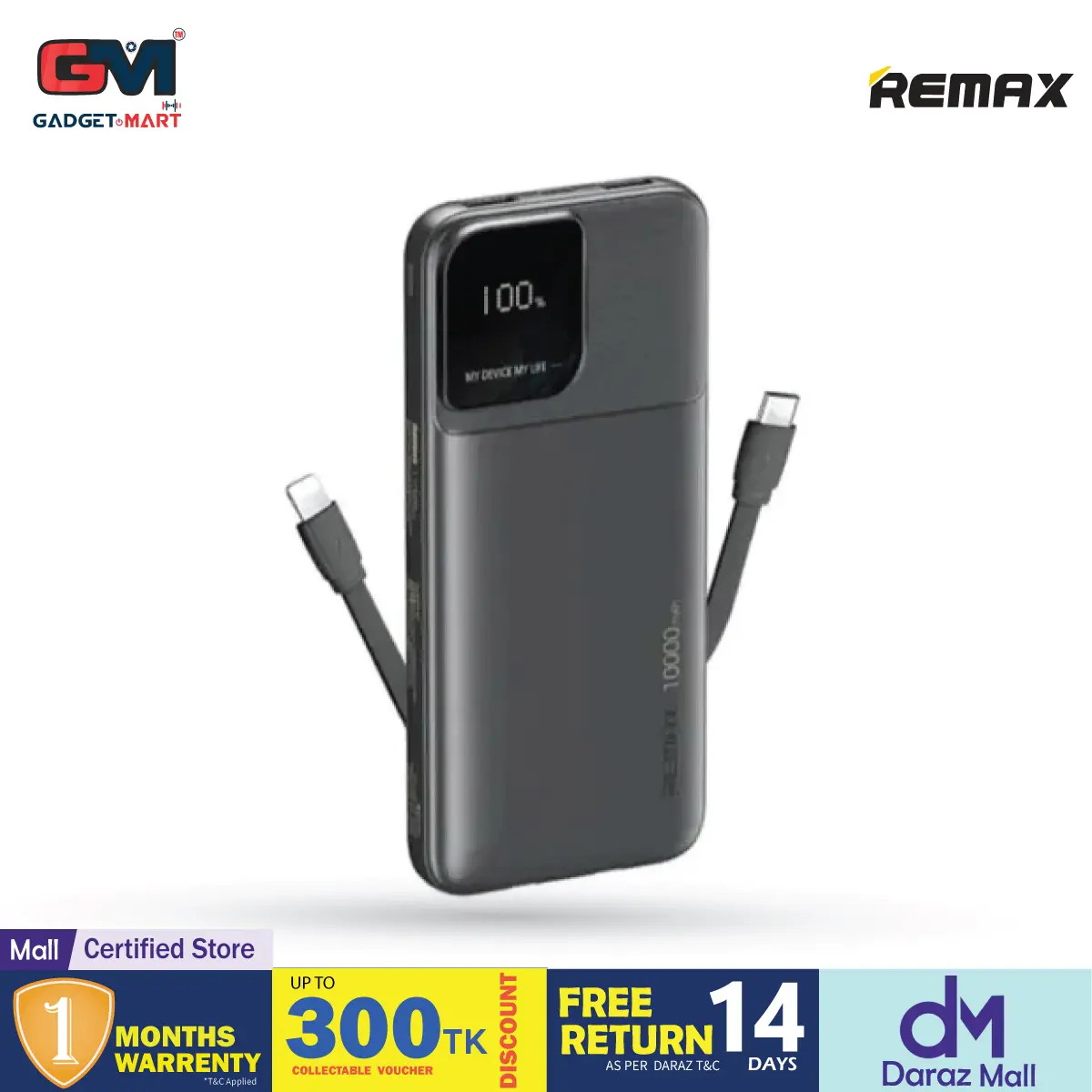 Remax Rpp-657 Fast Charging Mini Cheap Power Bank Portable With Data Cable Ultra Thin Small 10000mAh Powerbank - Black