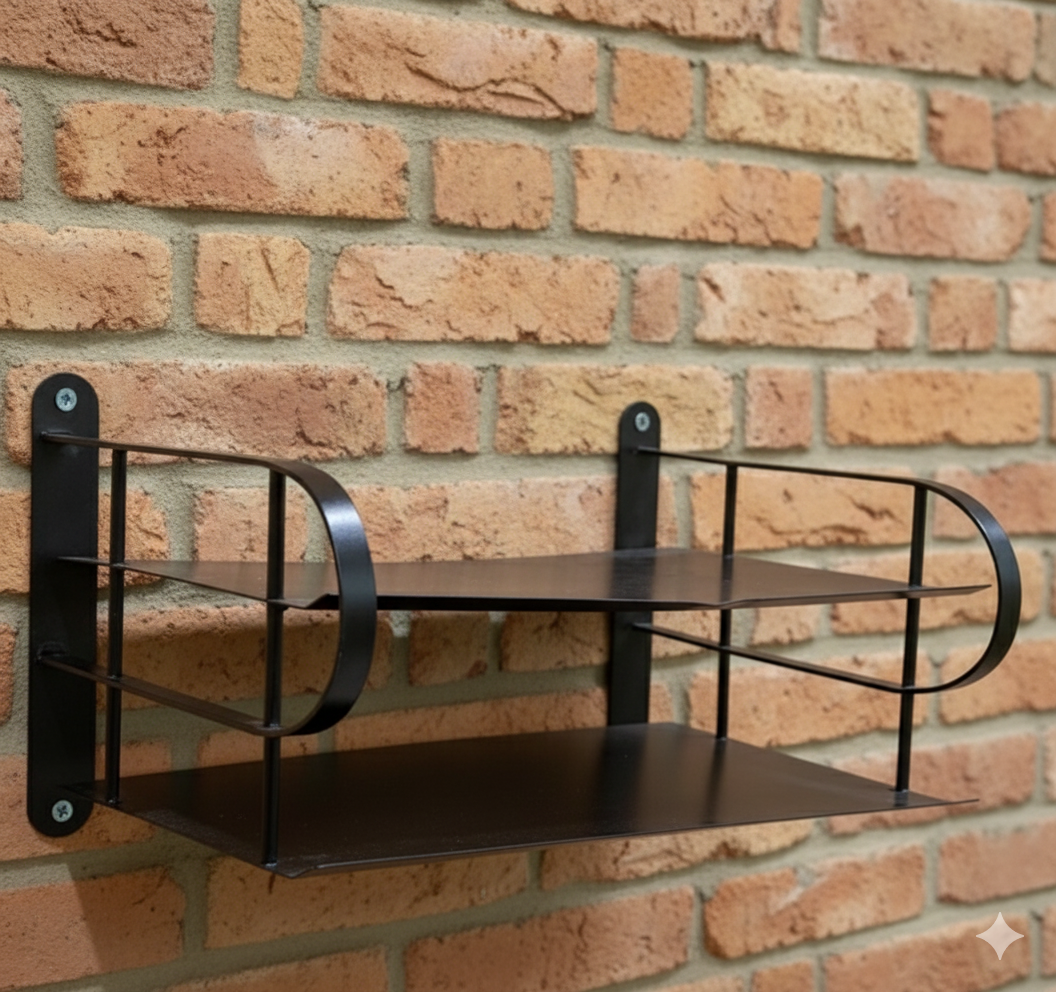 A sleek, wall-mounted storage solution designed to organize and protect your WiFi router, cables, and accessories. Made from durable black metal, it combines functionality with modern aesthetics, perfect for minimizing clutter while ensuring ventilation and easy access