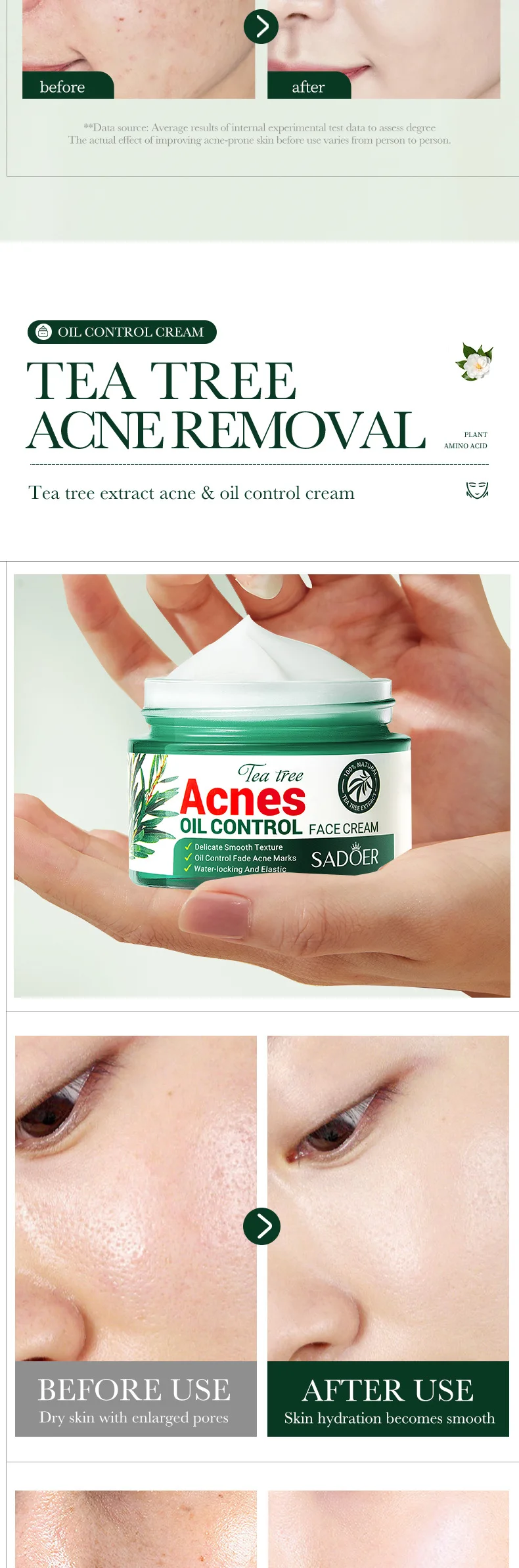 【দৈনিক মেরামত】চা গাছের নির্যাস দিয়ে সমৃদ্ধ চা গাছের মুখের ক্রিম, এটি কোলাজেন সংশ্লেষণকে উৎসাহিত করে, ব্রণ মেরামত ত্বরান্বিত করতে সাহায্য করে, মুখের লালভাব কমায়, প্রশান্তি দেয় এবং প্রশান্তি দেয় এবং প্রতিদিনের ভিত্তিতে ব্রণের বৃদ্ধিকে বাধা দেয়। 【দ্রুত শোষণ】শুষ্কতা এবং রুক্ষতার বিরুদ্ধে সারাদিন সুরক্ষা প্রদান করে, এই বিলাসবহুল ময়শ্চারাইজিং ফেস ক্রিম ফর্মুলা ত্বকে দ্রুত এবং স্বচ্ছভাবে শোষণ করে। 【তেল নিয়ন্ত্রণ】ব্রণের জন্য হালকা ওজনের, অ-চর্বিহীন ফেস ক্রিম অতিরিক্ত তেল শোষণ করতে এবং জরুরী দাগ দ্রুত দূর করতে সাহায্য করে। 【ময়শ্চারাইজড স্কিন】এই মৃদু টি ট্রি অয়েল ফেসক্রিমটি কম বয়সী দেখতে এবং মসৃণ চেহারার জন্য একটি নরম, মসৃণ ত্বকের ভারসাম্য বজায় রাখতে সাহায্য করবে। 【ব্রণের বিরুদ্ধে লড়াই করতে সাহায্য করে】মুখের ব্রণ-প্রবণ ত্বকের জন্য ময়েশ্চারাইজার যা আটকে থাকা ছিদ্র এবং ব্রণের দাগ কমাতে সাহায্য করে, সুষম, মসৃণ এবং পরিষ্কার দেখতে ত্বক পেতে সাহায্য করে৷