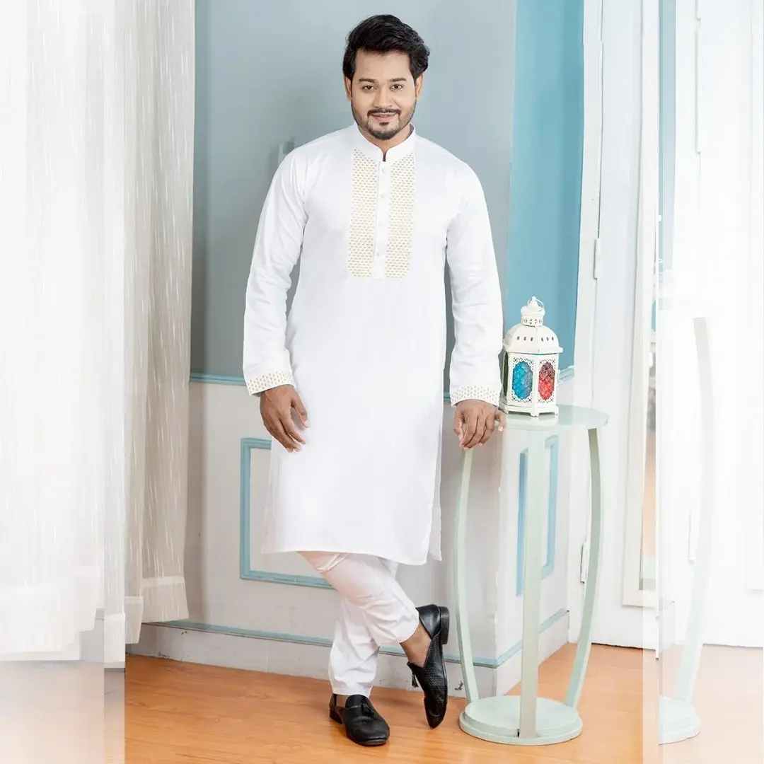 Men's Semi Long PanjabiFabrics: 100% soft cotton FabricsSize: 40, 42, 44Measurement:40=Chest-42, Length-4042=Chest-44, Length-4244=Chest-46, Length-44Soft Fabrics