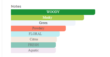 তাজা ফুল ও মৃদু মশলার সংমিশ্রণ – শুরুতেই হালকা সাইট্রাস ও সাদা ফুলের সুবাস, যা পরে নরম কাঠ ও মিশ্রিত মশলার গভীরতায় পরিণত হয়।