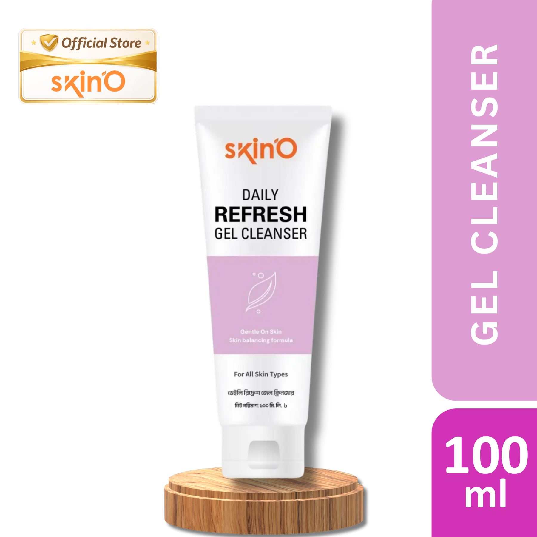 - Experience a refreshing cleanse every day with skin’O Daily Refresh Gel Cleanser. It cleans deeply to remove oil, dirt, and impurities that cause breakouts, while keeping your skin balanced and comfortable. The soothing formula calms irritation and refreshes your skin without drying it out. Ideal for daily use on all skin types, it helps reveal a clearer, smoother, and more radiant complexion.