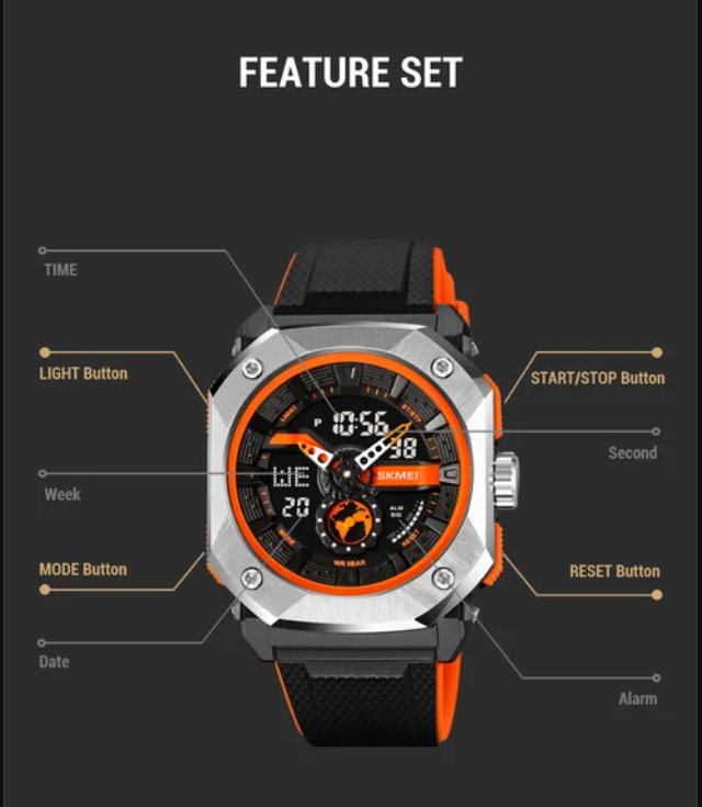 SKMEI 2272 MEN DIGITAL WATCH STAINLESS STEEL CASE DUAL TIME SPORTS WATERPROOF WATCH