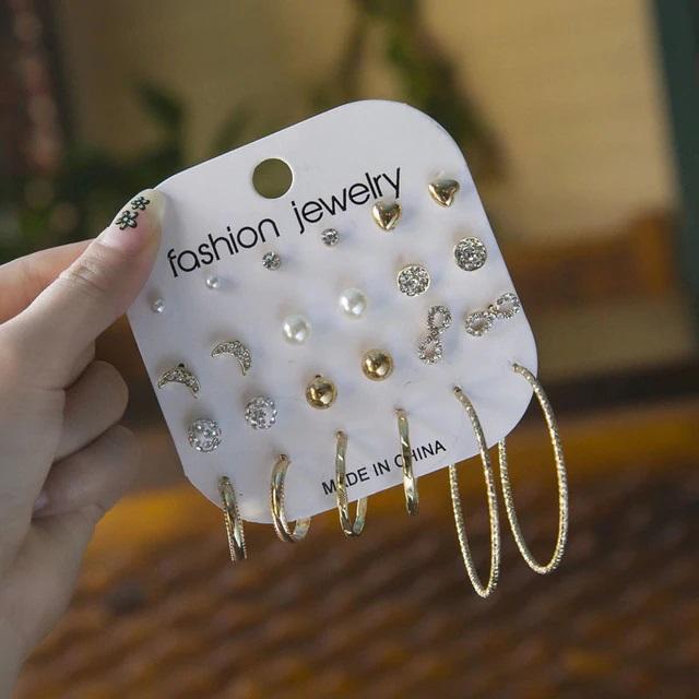 12 Pair/Set Korean Square Zircon Stud Earrings Rhinestone Set Earrings Crystal Geometric Beans Ear Jewelry