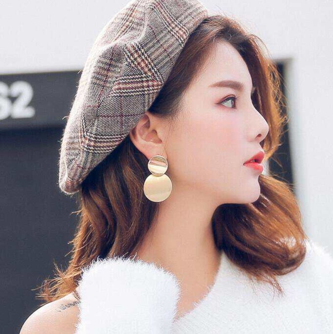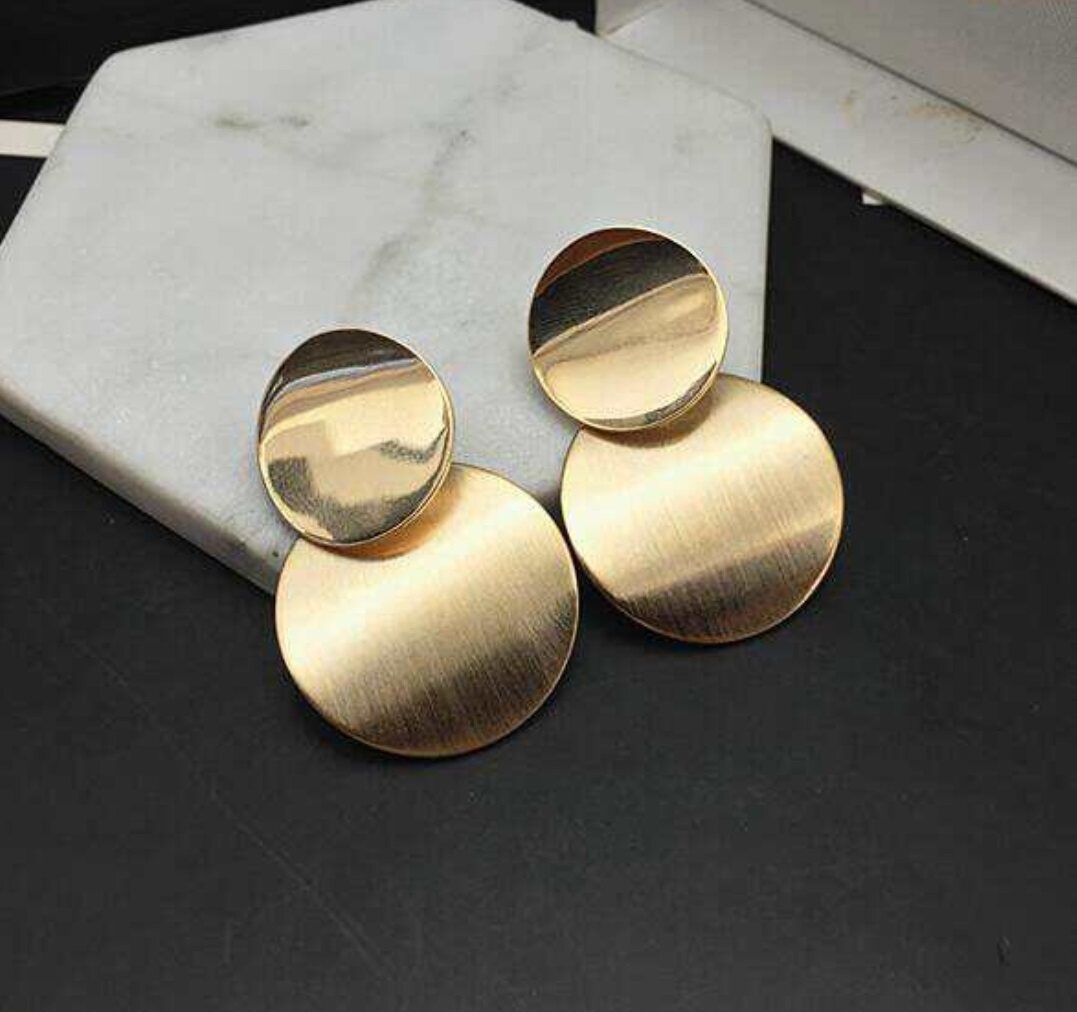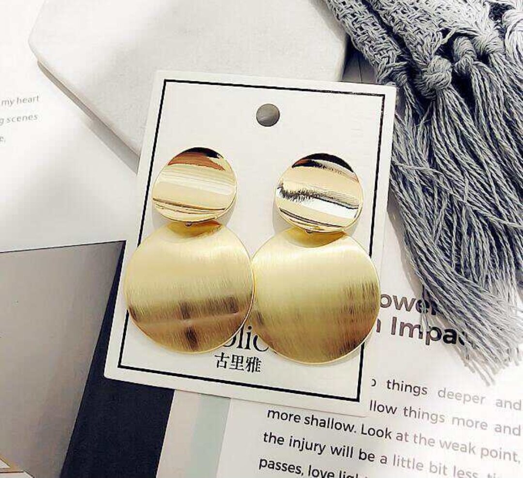 Gold Color Statement earrings Geometric Circle Metal Drop Earrings from Women
