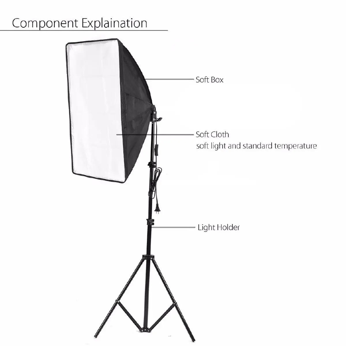 Studio Softbox Light Kit with 4in1 E27 Lamp Holder with 50*70cm Softbox & Stand Black