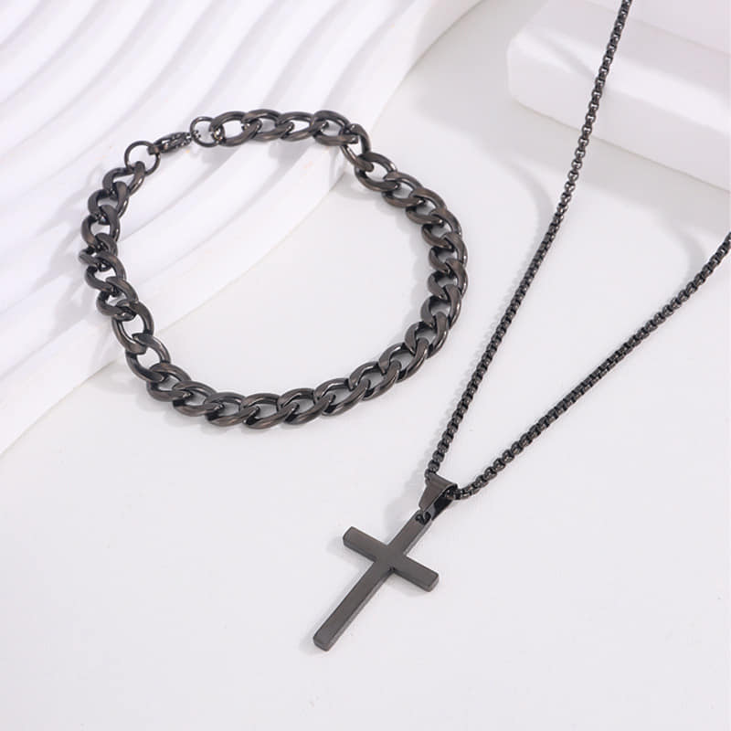 Style 3-Piece Fashion Jewelry Set Stainless Steel, Simple Golden Necklace Combo for Men Casual Accessories