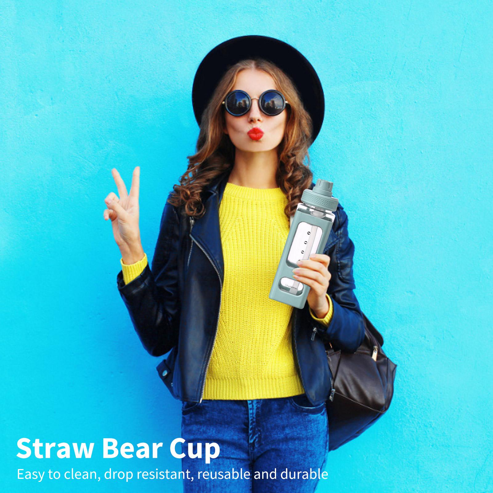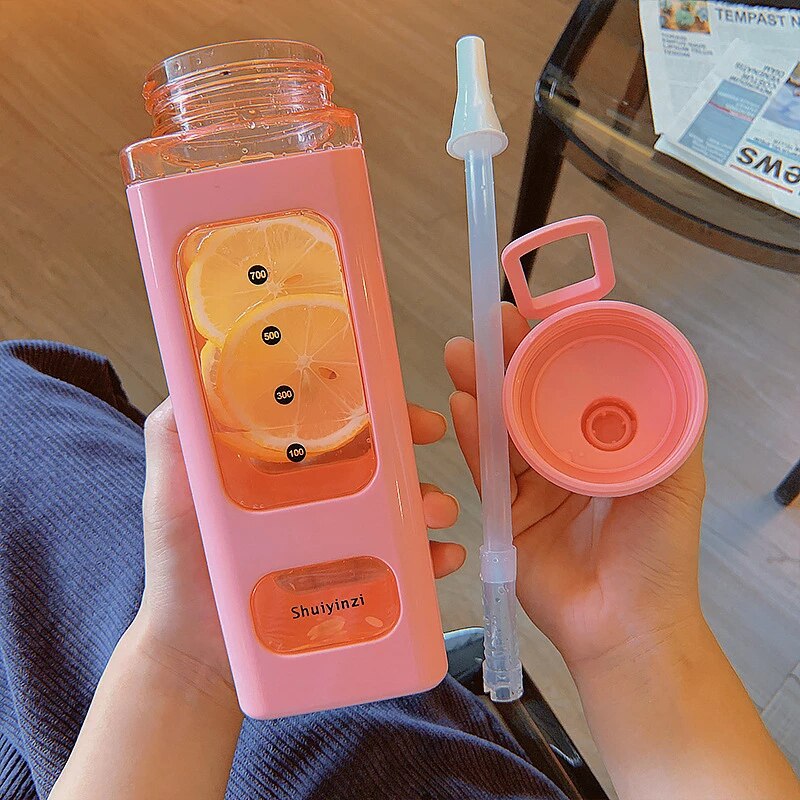 - Large capacity double layer plastic straw water bottle