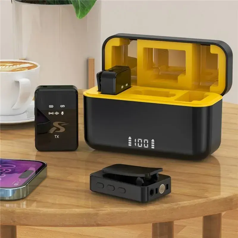 roduct details of SX12 Lavalier Clip-On Wireless Microphone with Dual Microphones + ReceiverWelcome to our store.Follow Us Can get more Follower Welfare.Every item you can choose is in stock and you can order directly.Any problem you meet, contact our After-sale Service.Each item will been checked and in good condition 100% before shipping.We are Cross-border Sellers from China,Items Usually Arrives in 7-15days as soon as possible.SX12 Lavalier Clip-On Wireless Microphone with Dual Microphones + Receiver1. Provide professional-grade recording output with clear sound quality and no noise.2. Plug and play, no need to install drivers, easy to use3. Use digital output and analog output to support noise reduction, reverberation, two-way monitoring, audio input and mute functions4. Supports wireless connection, automatically connects after powering on, easy to operate, dual microphones, supports two people using it at the same time5. Can be used for webcasting, video shooting, program interviews, interview recordings, video teaching, etc.Specifications: 1. Input voltage: 5V2. Microphone battery: 200mAh3. Receiver battery: 200mAh4. Charging compartment battery: 1000mAh5. Battery life: 9 hours6. Signal-to-noise ratio: 64dBM7. Transmission delay: 30ms8. Sensitivity: -42 dB9. Frequency response range: 20-20KHZ10. Transmission distance: 20-30m (barrier-free)