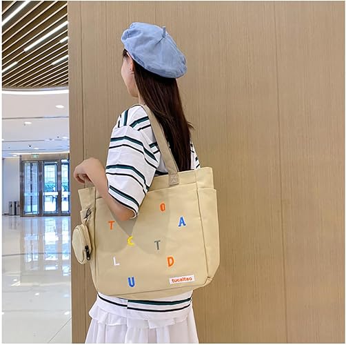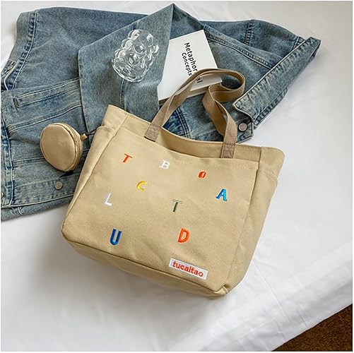 TAG Lifestyle Exclusive Design embroidery Canvas Tote Bag, Fashionable Top Handle With four Outside Pockets Trendy Fashionable Tote Bag for University, College Students Girls And Women