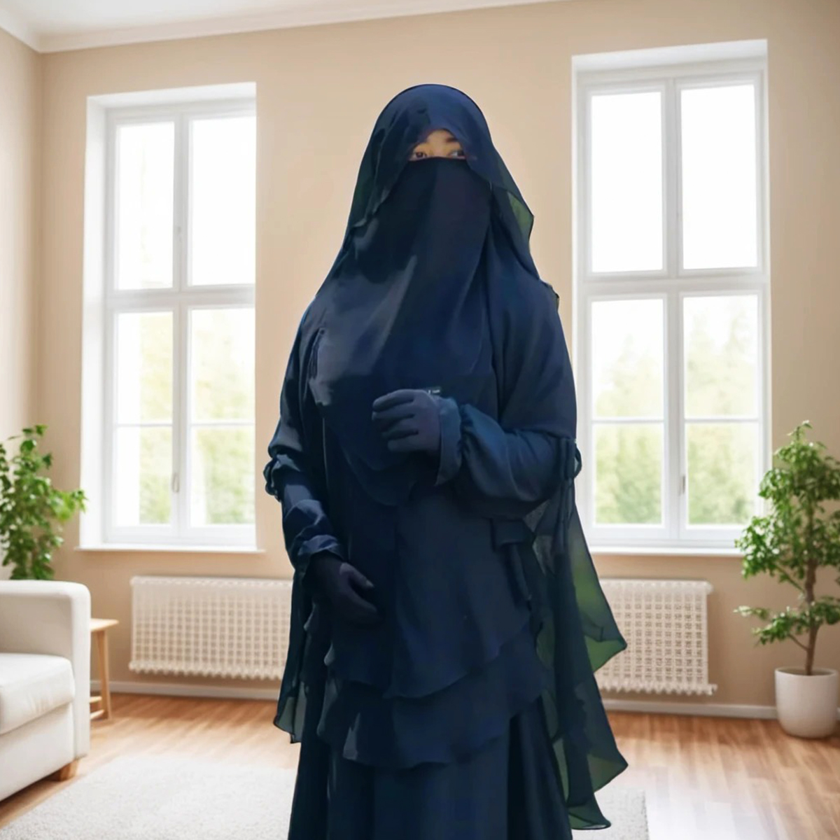 This three-part hoodie niqab offers full coverage and is made from soft, breathable jorjet fabric. Ideal for prayer or daily wear, it provides comfort and modesty with its unique design. The niqab features a practical hood for added coverage, with adjustable straps for a customized fit. Available in various sizes, it is perfect for women looking for stylish yet functional modest wear. The jorjet material ensures a smooth, lightweight feel while maintaining durability.