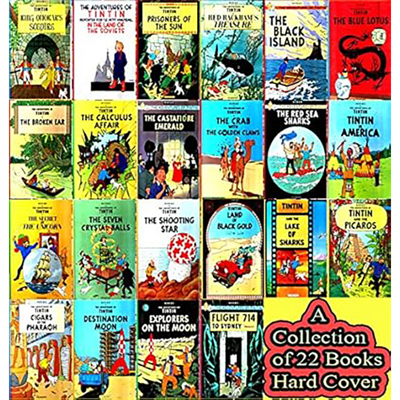 1. The Adventure of Tintin in Tibet2. The Adventures of Tintin: Tintin in America3. The Adventures of Tintin And The Picaros4. The Adventures of Tintin Cigars of The Pharaoh5. The Adventures of Tintin Destination Moon6. The Adventures of Tintin Explorers on The Moon7. The Adventures of Tintin Flight 714 To Sydney8. The Adventures of Tintin King Ottokar's Scepter9. The Adventures of Tintin Land of Black Gold10. The Adventures of Tintin Reporter For11. The Adventures of Tintin Prisoners of The Sun12. The Adventures of Tintin Red Rackham's Treasure13. The Adventures of Tintin The Black Island14. The Adventures of Tintin The Blue Lotus15. The Adventures of Tintin The Broken Ear16. The Adventures of Tintin The Calculus Affair17. The Adventures of Tintin The Castafiore Emerald18. The Adventures of Tintin The Crab With The Golden Claws19. The Adventures of Tintin The Red Sea Sharks20. The Adventures of Tintin The Secret of The Unicorn21. The Adventures of Tintin The Seven Crystal Balls22.The Adventures of Tintin The Shooting Star23.Tintin and ALPH -ART24.Tintin And The Lake of Shark