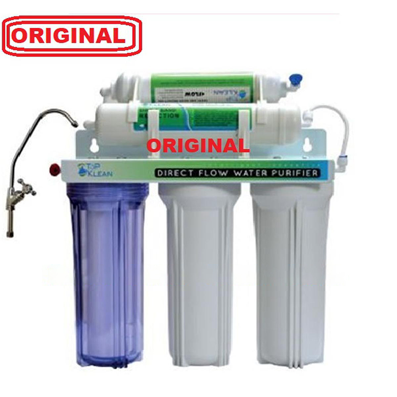 - Top Clean 5-Stage Water Purifier Full Set (Non Electric) Product DescriptionBrand: Top CleanOrigin: TaiwanFiltration stage: FiveCapacity: 1 GPMTechnology: Ultra filtrationAble to drink pure waterMust be connected to the water lineLow cost water purifier filterThe water will be filtered as long as there is water in the water lineThere is no calculation of one liter of waterYou can keep it anywhere in the office or home